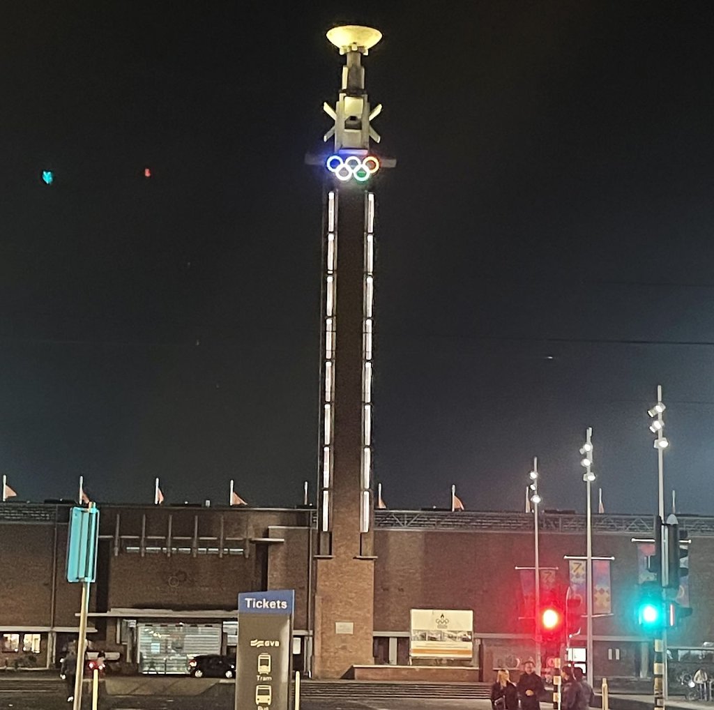 Die anschließende Metrofahrt zum Stadtteil Zuid führte vorbei an futuristischen, gläsernen Hochhauskomplexen zum Olympia-Hotel, welches ebenso völlig gläsern war und einem imposanten Ausblick auf das Olympiastadion mit der Feuerschale und den leuchtenden olympischen Ringen bot.