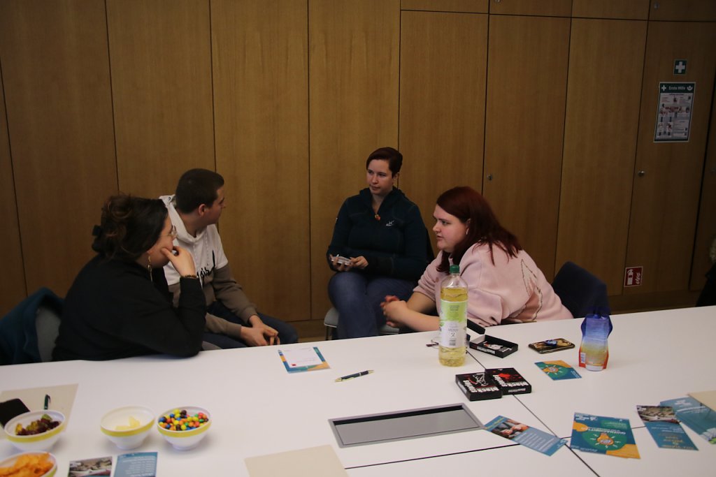 Am Samstagabend war es Zeit für die zweite Runde und der Konferenzraum in der Stadtbibliothek war voll besetzt. Am Kopf der Tisches, mit spitzen Filzhut auf dem Haupt, erläutert Max worum es geht. Mit 12 Jahren Rollenspiel-Erfahrung gibt er den Meister der Runde, also den Spielleiter und Erzähler, alle anderen sind noch Neulinge in der Pen & Paper Welt. Mehrere Stunden hat man Zeit, die Abenteuergeschichte vom letzten Mal fortzuführen.