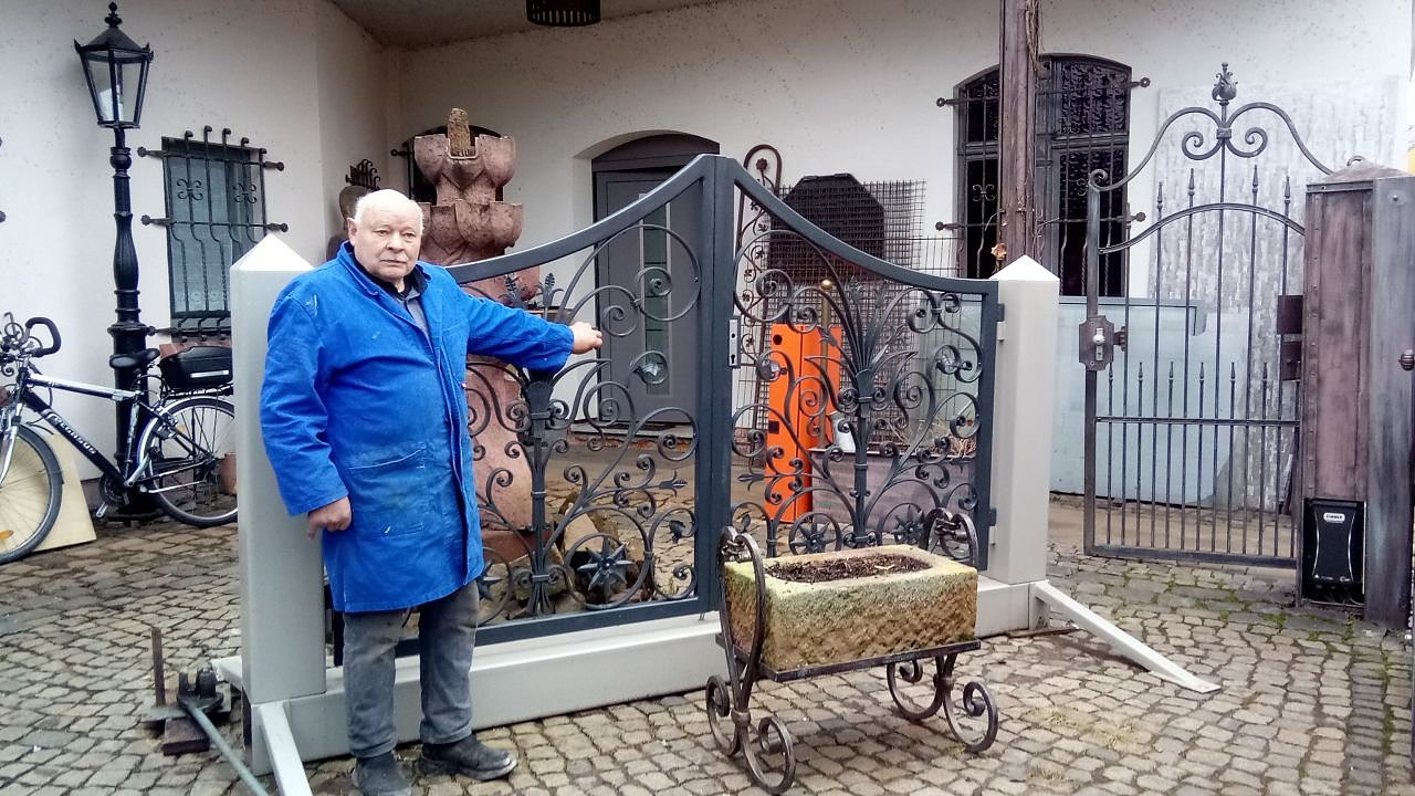 Schmiedekunst/Metallbau ist über dem Eingang seiner Werkstatt zu lesen. Jeder seiner Auftraggeber, ob weltliche oder geistliche, schätzt das Geschick des Herbert Thüne. 60 Prozent der Kundenwünsche betreffen den Metallbau, alles andere ist Schmiedekunst. Der Mann könnte sich zur Ruhe setzen, Feuer, Amboss, Hammer hinter sich lassen. Für ihn keine Option. Er fühle sich fit wie ein Turnschuh, könnte Tag und Nacht arbeiten, um Wünschen aus nah und fern gerecht zu werden.