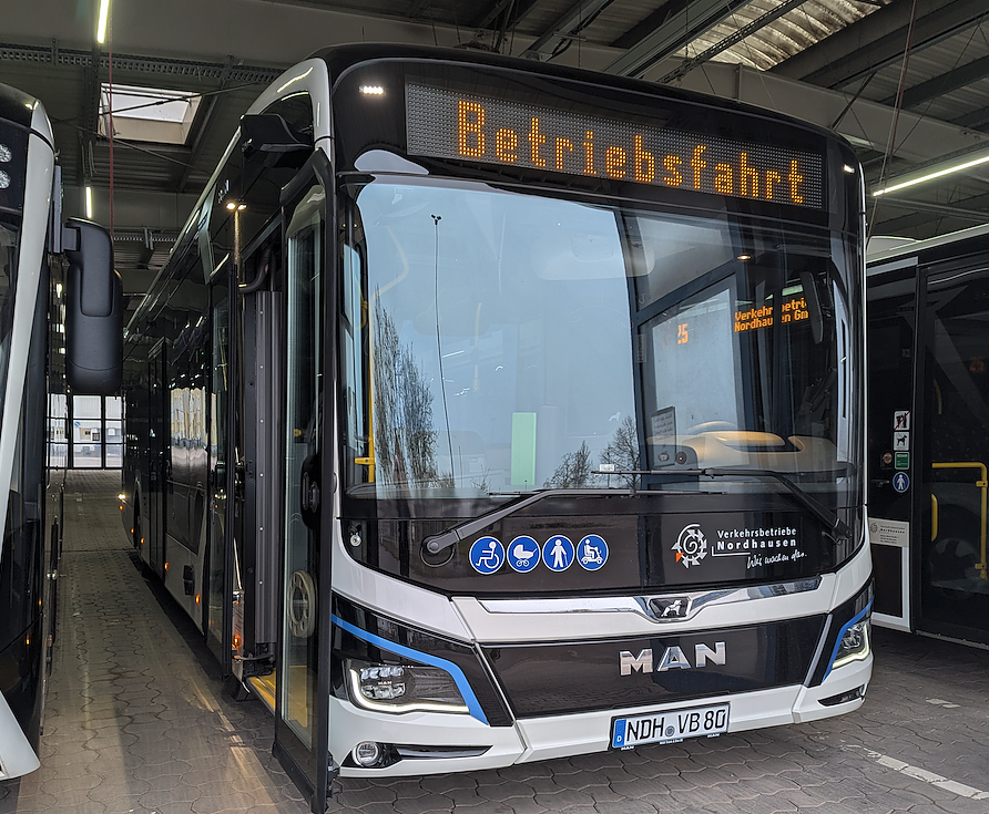 Zudem ist der Bus mit einem modernen Spiegelersatzsystem und einem Abbiegeassistenten ausgestattet, was die Sicherheit für die Fahrgäste und andere Verkehrsteilnehmer erhöht. Wir sind stolz darauf, unseren Fuhrpark mit diesem fortschrittlichen Elektrobus zu erweitern. Der MAN ist ein hervorragendes Beispiel für unsere Bemühungen, den öffentlichen Nahverkehr umweltfreundlicher und sicherer zu gestalten. Mit diesem Bus leisten wir einen wichtigen Beitrag zur Reduzierung von Emissionen und zur Verbesserung der Luftqualität, sagt Markus Schraps, Betriebsleiter Busverkehr bei den Nordhäuser Verkehrsbetrieben.
