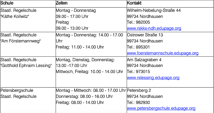 Die Anmeldungen für die Aufnahme in eine 5. Klasse der Regelschule finden einheitlich für alle Regelschulen im Stadtgebiet Nordhausen vom 3. bis 7. März 2025 zu den folgenden Zeiten statt: