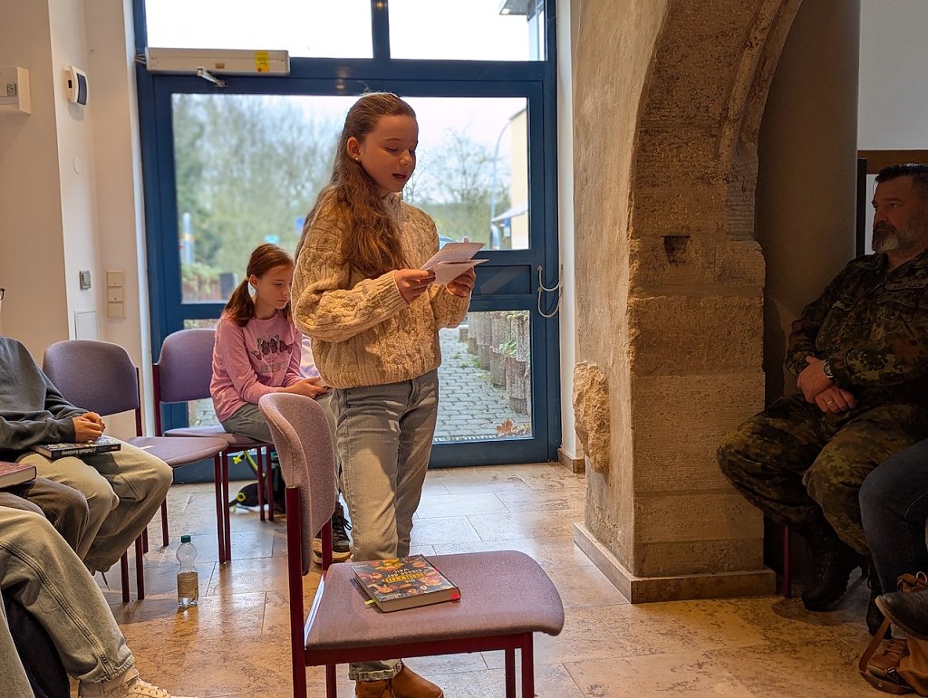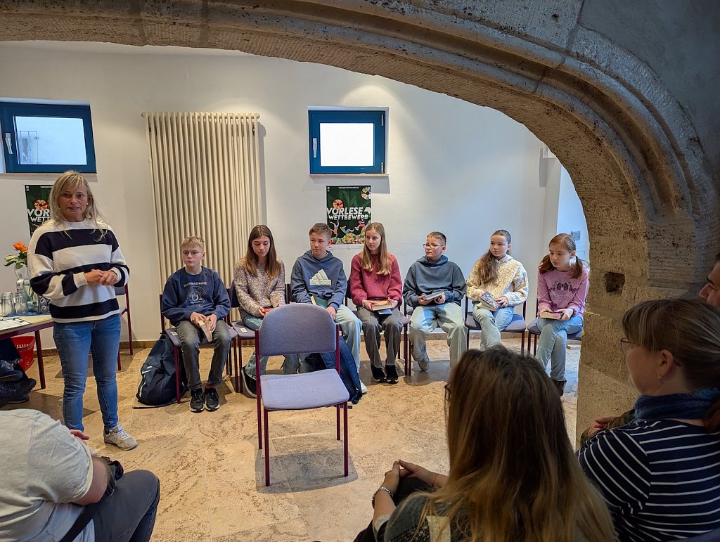 Danach lasen die Schüler nacheinander aus den von ihnen ausgewählten Büchern vor. Hierbei wurde nach Lesetechnik, Interpretation und Textstellenauswahl bewertet. Im Anschluss erhielten alle das Buch Die wundersamen Talente der Kalendario-Geschwister von Luisa Söllner zum Vorlesen, das von den Organisatoren des bundesweiten Vorlesewettbewerbs ausgewählt wird.