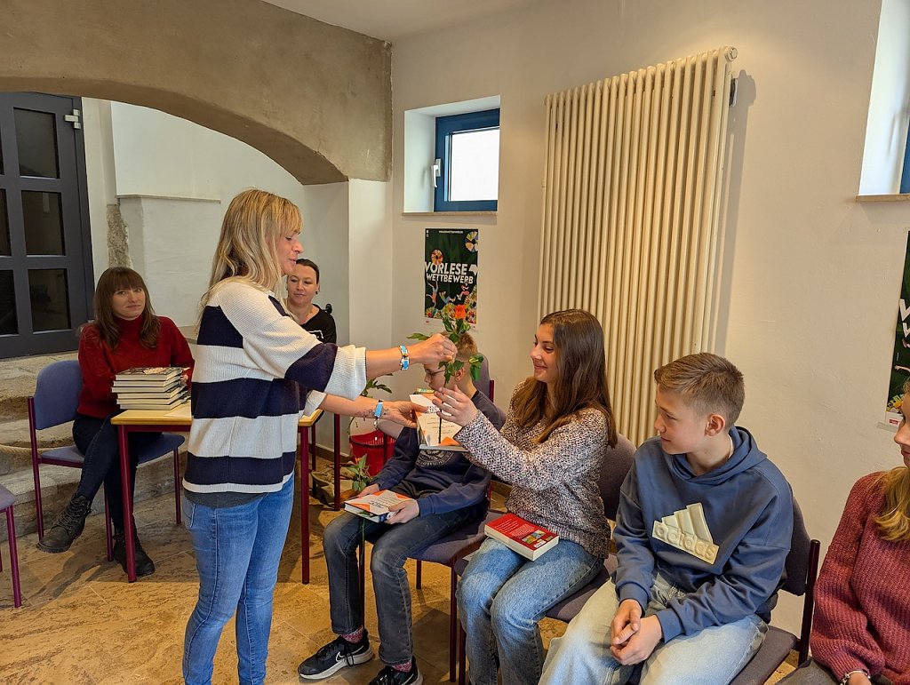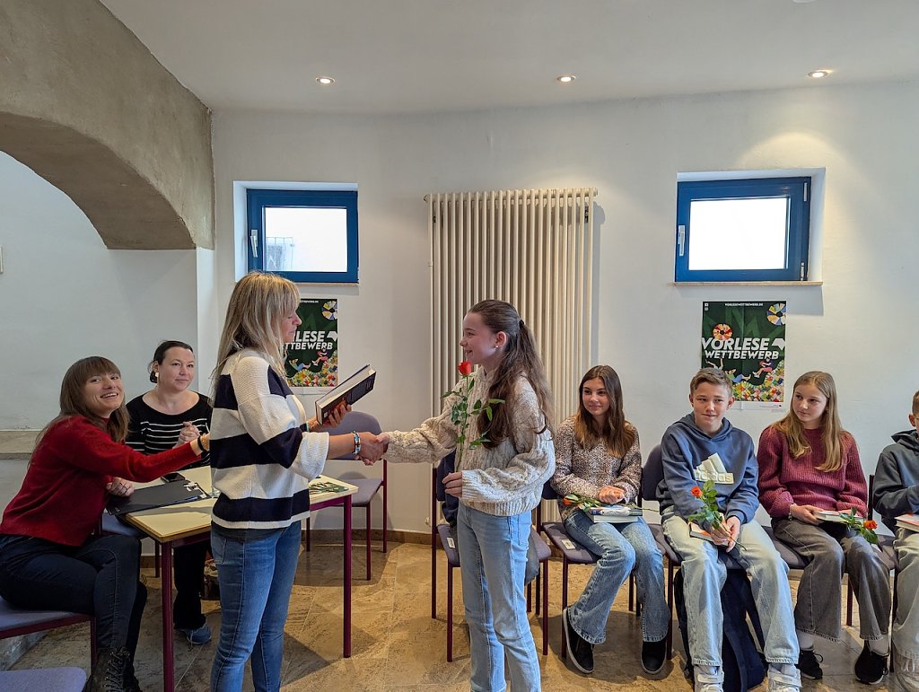 Danach war es geschafft und die Jury, bestehend aus Janett Noack und ihrem Team, zogen sich zur Auswertung zurück. Alle Teilnehmer erhielten für Ihre Teilnahme am Regionalentscheid eine Teilnehmerurkunde und das Vorlesebuch geschenkt. Für ihre außerordentliche Leistung im Vorlesen kürte die Jury Emma Schinköthe zur diesjährigen Gewinnerin. Die Schülerin des Geschwister-Scholl-Gymnasiums freute sich sehr über die Auszeichnung und darf sich nun auf den Bezirksentscheid vorbereiten.