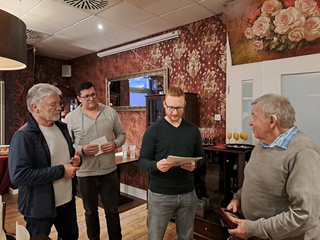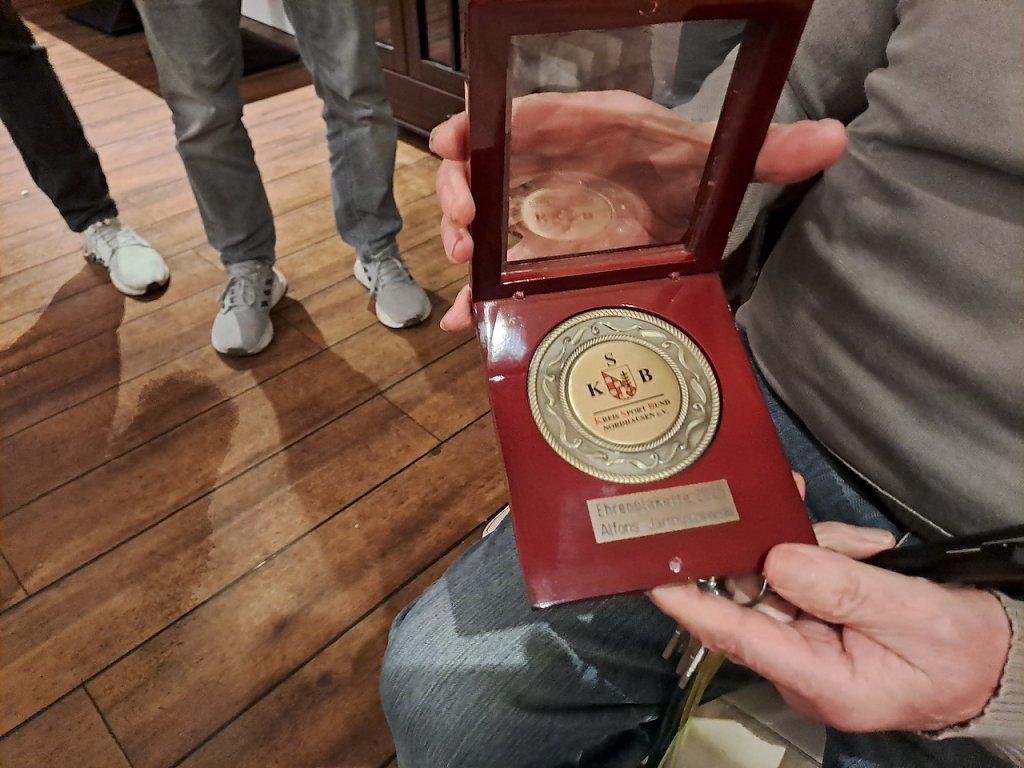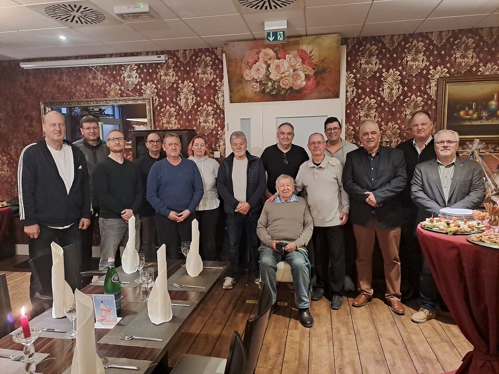 Vereinsvorsitzender Prof. Dr. Philip Heiser sowie Schatzmeister Jens Laubner und die Kinderschutzbeauftragte Stefanie Bartel ließen es sich nicht nehmen Alfons Jarmuszewski zu verabschieden. Der Kreissportbund kam mit seinen Vorsitzenden Gerd Störmer, seinen Geschäftsführer Patrik Börsch und Jugendkoordinator Viktor Vollmer und überreichten ihn die Ehrennadel des Kreissportbundes Nordhausen. Ein weiterer der den Sport in Nordhausen geprägt hat - Werner Hüttcher – war ebenfalls der Einladung gefolgt. Für die vielen weiteren Sportler überbrachte stellvertretend Udo Eidam vom TTV Hydro die besten Wünsche für die Zukunft.