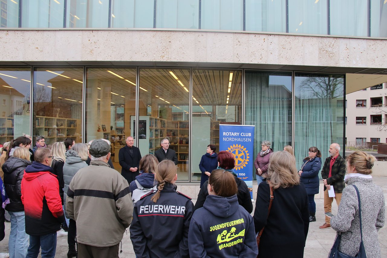 Von A wie Ahornpark Ilfeld bis T wie TSG Salza - vor der Bibliothek wurde heute der Erlös aus der Adventsaktion des Lions-Clubs und der Rotarier an 24 Vereine aus der Region verteilt...