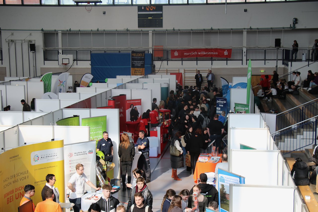 Vom Handwerker bis zu Sozialarbeitern, vom Krankenhaus bis zu Bundeswehr und Polizei, vom Bäcker bis zum Bergarbeiter - die gebotene Bandbreite kann sich sehen lassen, nicht nur Firmen aus dem Landkreis sind vertreten, auch einige Unternehmen aus der Nachbarschaft haben Vertreter nach Nordhausen geschickt, um beim Nachwuchs für sich zu werben.