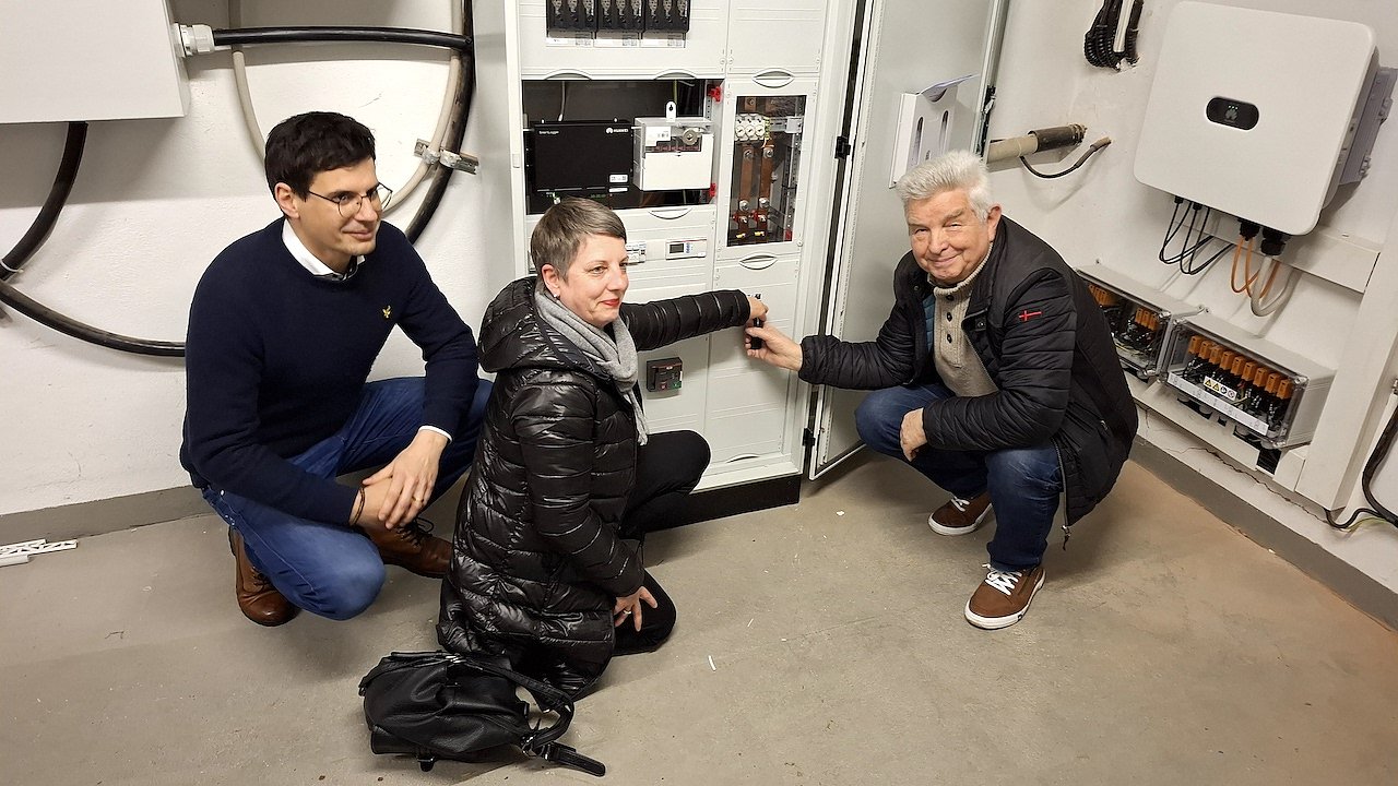 Zur symbolischen Inbetriebnahme waren Sebastian Kupfer von unserem Planungsbüro Freinunft GmbH, Susanne Lier als Vertreter der Geschäftsleitung der Diakonie, Thomas Koch vom bauausführender Elektrobetrieb sowie Claus Müller und Jürgen Weidt als Vertreter der EG anwesend.