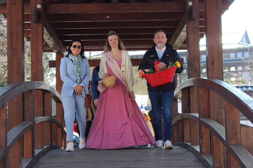 Der Festumzug wurde von Bürgermeister Mathias Heinz (Mitte), Kurdirektorin Katja Rudolph (li.) und der Rosenkönigin Maxima angeführt (Foto: Eva Maria Wiegand)