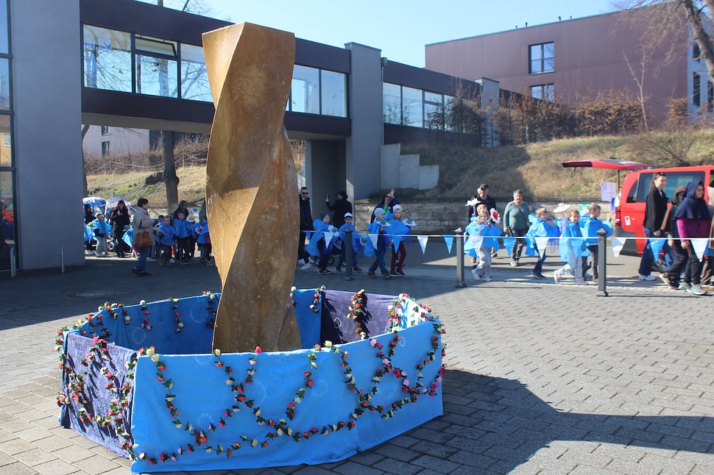Als Dank für den disziplinierten und bestens organisierten Marsch durch die Stadt wurden die kleinen Teilnehmer mit einer Bratwurst belohnt, worauf sich einige der mitlaufenden Jungs schon während des ganzen Spaziergangs gefreut haben sollen. Die liebevoll gestalteten Bastelarbeiten und die heute zum Schutz vor der Sonne verwendeten Schirme wurden abschließend in der Therme aufgehängt.