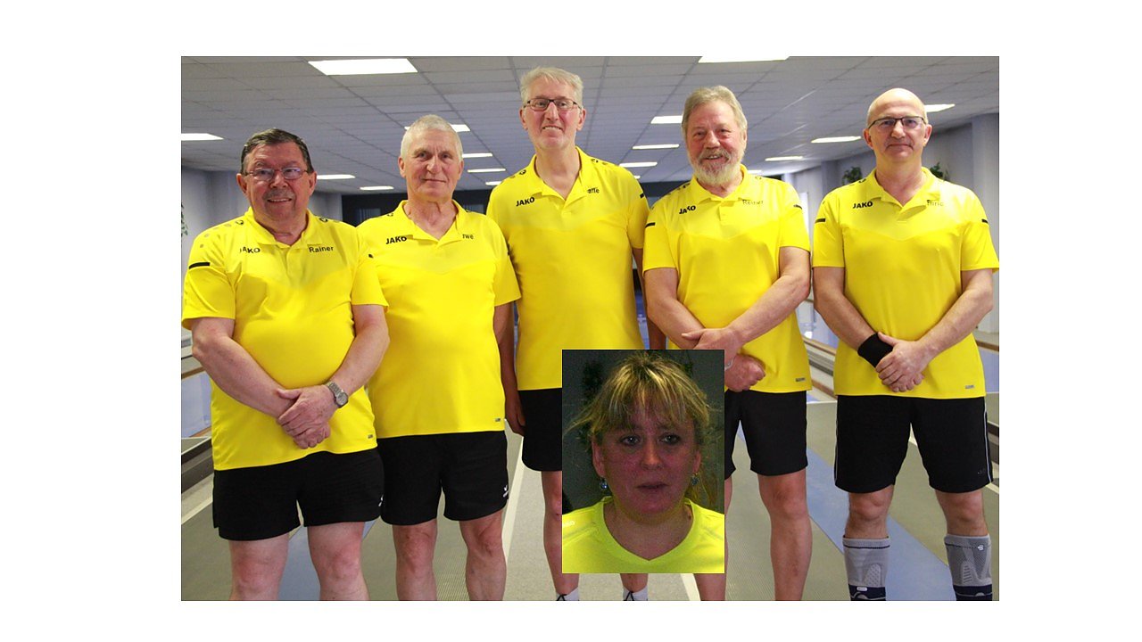 Bei nur einer Niederlage und einem Unentschieden holten sich die Senioren des Nordhäuser SV überlegen den Staffelsieg in der Landesliga. Von links Rainer Wille, Uwe Schmögner, Karl-Josef Gleitze, Reiner Hagemeier und Enric Winkler. Im kleine Bild Tina Romhardt, die beim Abschluss fehlte.