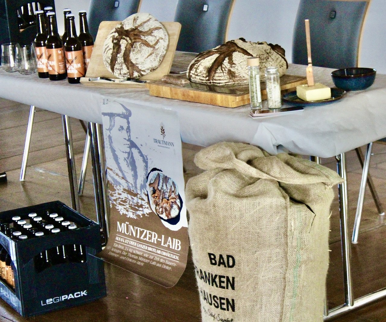 Dieses Festbier wird in ausgewählten Bad Frankenhäuser Gaststätten zukünftig angeboten, in der Tourist-Info erhältlich sein und zu den verschiedensten Veranstaltungen im Gedenkjahr angeboten. Die Backmanufaktur Trautmann stellte den Müntzer-Laib, gebacken aus Dinkel, Emmer- und Einkornmehl, vor. Kümmel, ein spezielles Salz und das eine oder andere Backgeheimnis geben ihm außerdem seine ganz besondere Note.