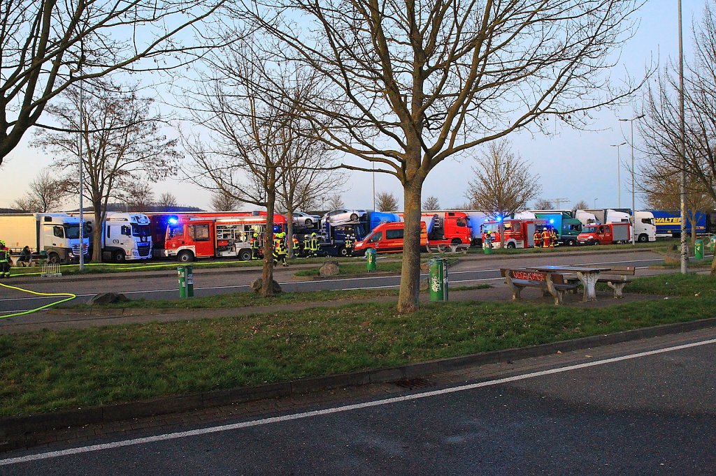 LKW brannte auf Autobahn-Raststätte