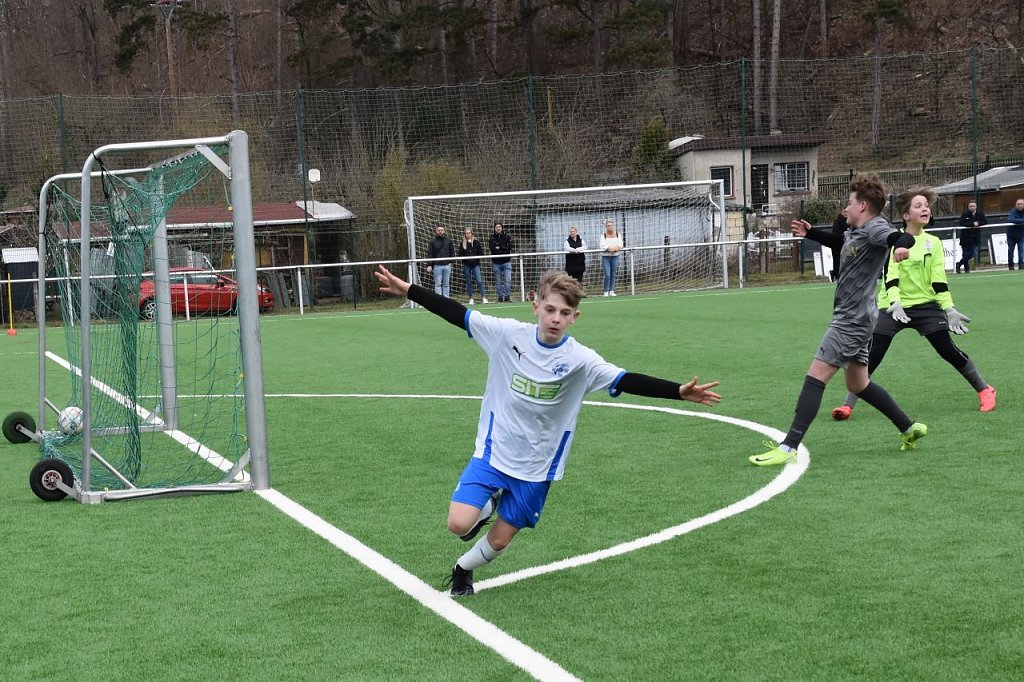 Nachdem ein Schuss der Jenaer über unser Tor flog, tanzte der Freistoß auf unserer Querlatte. Im Alleingang setzte sich Max Schieke in der 22. Minute gegen die gegnerische Abwehr durch und verwandelte flach ins Toreck zur 1:0 Wacker-Führung. Nachdem ein Fernschuss am Wacker-Tor vorbei strich, brach Max Schieke durch die Jena-Abwehr. Er konnte jedoch, allein vor Paul Meißner, im Tor der Jenaer, den Keeper nicht überwinden. So blieb es bei der verdienten Pausenführung der Wacker-Kids.