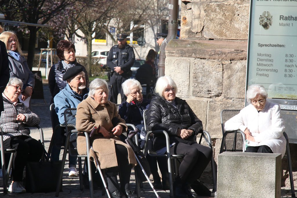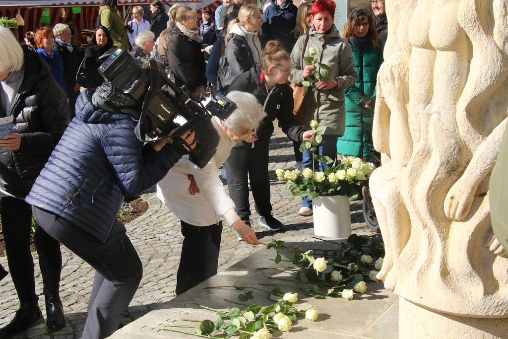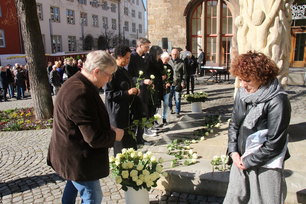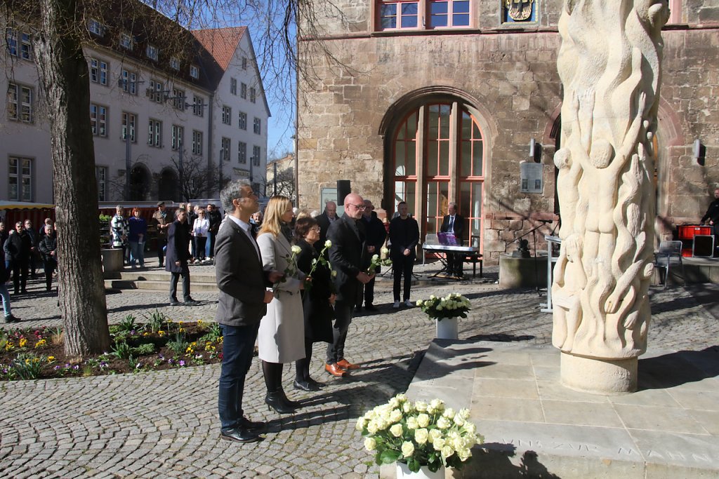 Das unbeschreibliche in Worte zu fassen ist eigentlich eine Aufgabe für den Dichter. Vor der Stele am Rathaus fand man heute auch mit Poesie Wege, die Schicksalstage Nordhausens vor 80 Jahren eindringlich in die Gegenwart zu holen…