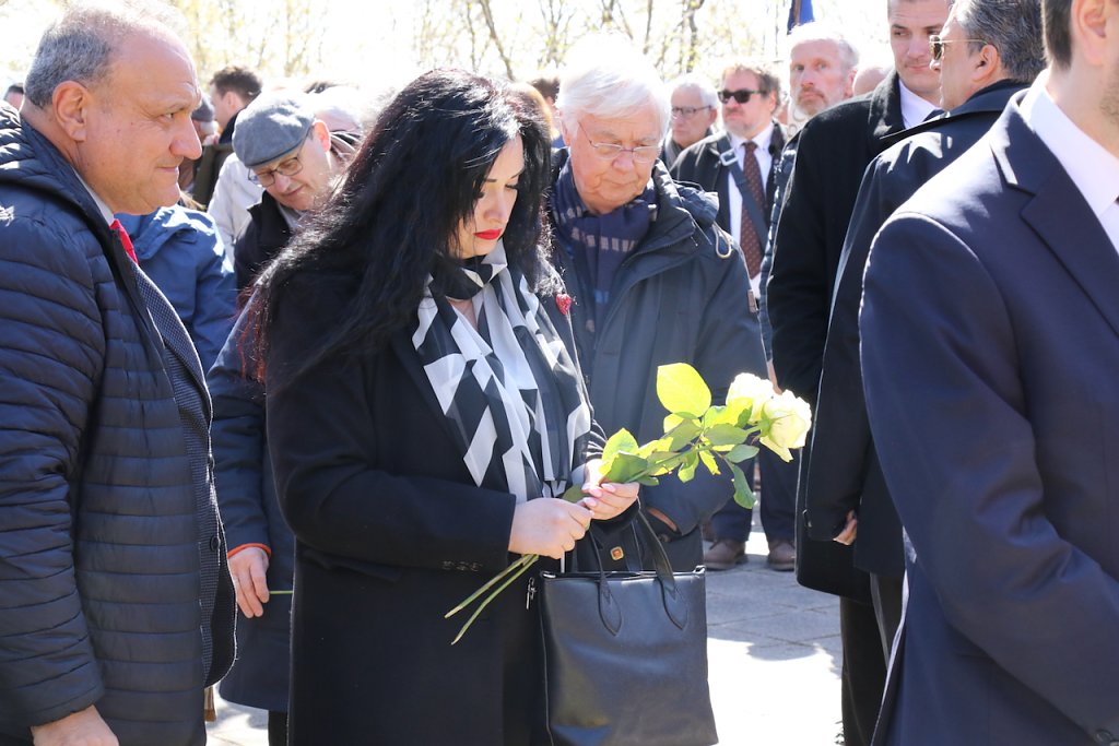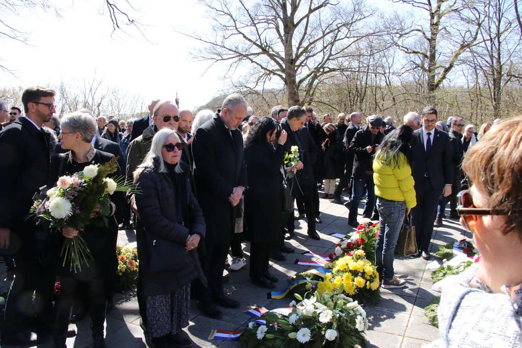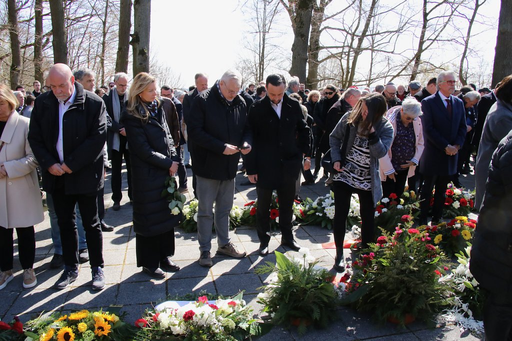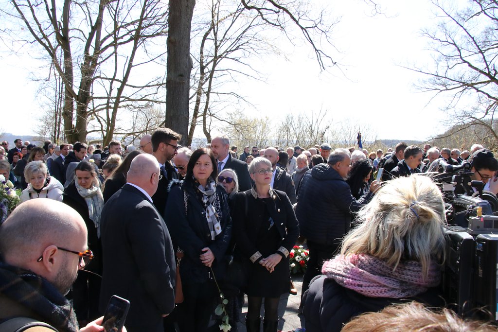Zur Kranzniederlegung vor dem Krematorium versammelten sich rund 500 Gäste, noch fünf Stühle hatte man für die Ehrengäste aufgestellt, besetzt wurde nur einer.