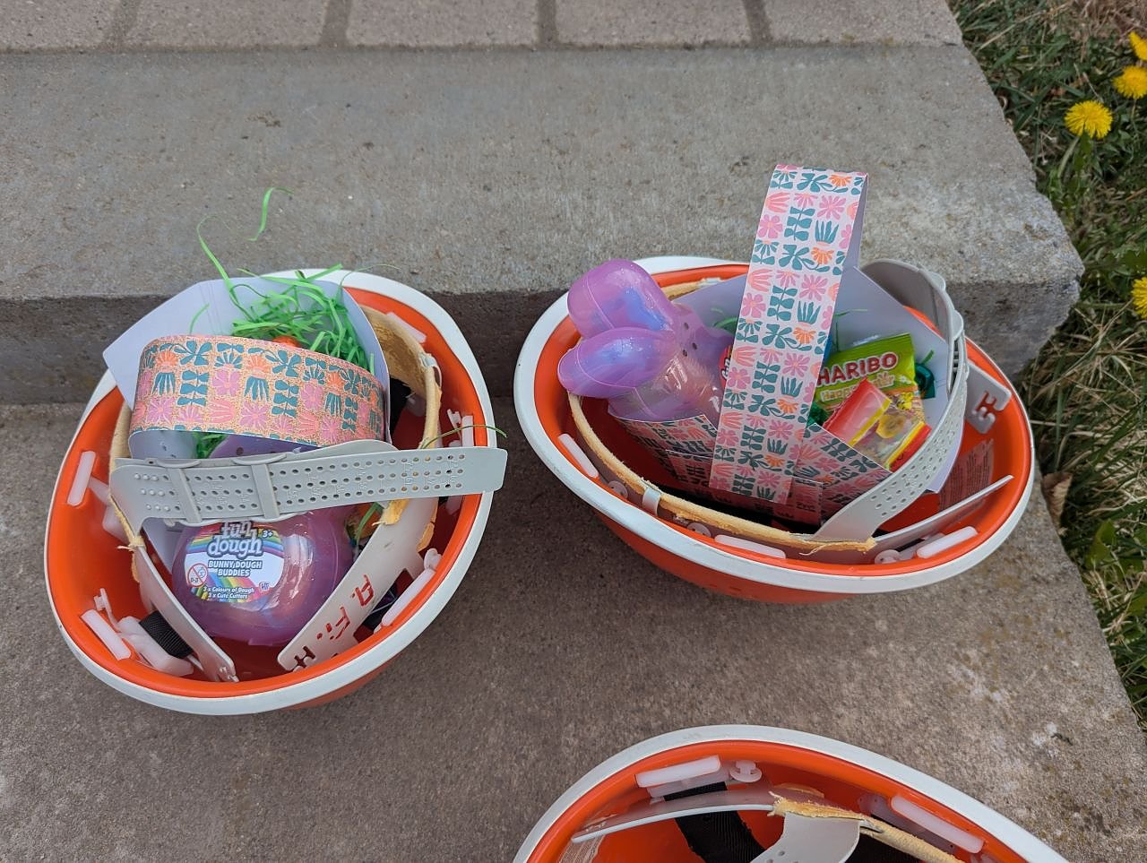Mit einem Schlauch konnten alle Kinder auf Dosen spritzen und so einmal testen, wie schwer es ist den Wasserstrahl zu kontrollieren. Während alle Kinder beschäftigt und abgelenkt waren, hat der Osterhase heimlich hinter der Feuerwehr die Osterkörbchen versteckt. Diese wurden aber ganz schnell von allen Kindern gefunden. Stolz hat dann jedes Kind sein Körbchen zurück in den Kindergarten getragen.