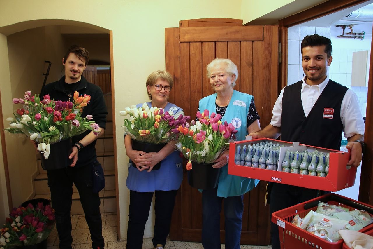 Die zweite Spende des Tages wird sich nicht nur die Tafel-Belegschaft sondern vor allem die Kundschaft freuen: der Marktleiter des Rewe-Marktes in der Südharz-Galerie, Rahim Yousufzai, hatte kistenweise Schokolade und jede Menge Tulpen im Gepäck. Und damit die Osterleckereien auch gut eingesammelt werden können, gab es noch ein paar Beutel dazu.
