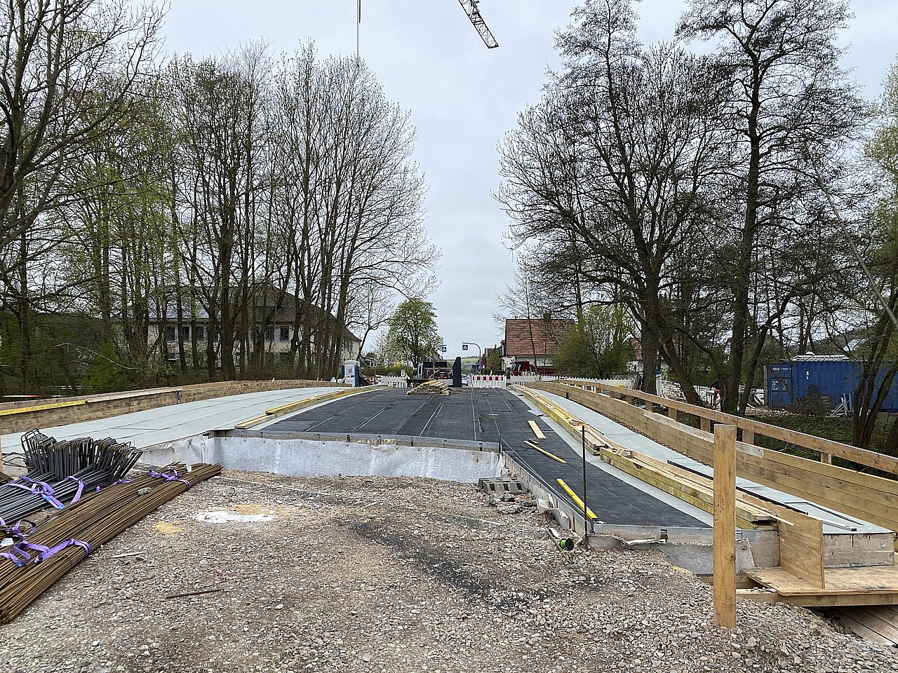 Im Vergleich zum März sieht man weitere Fortschritte. In den nächsten Wochen wird die Fahrbahn aufgebracht und die Geländerarbeiten beginnen.
