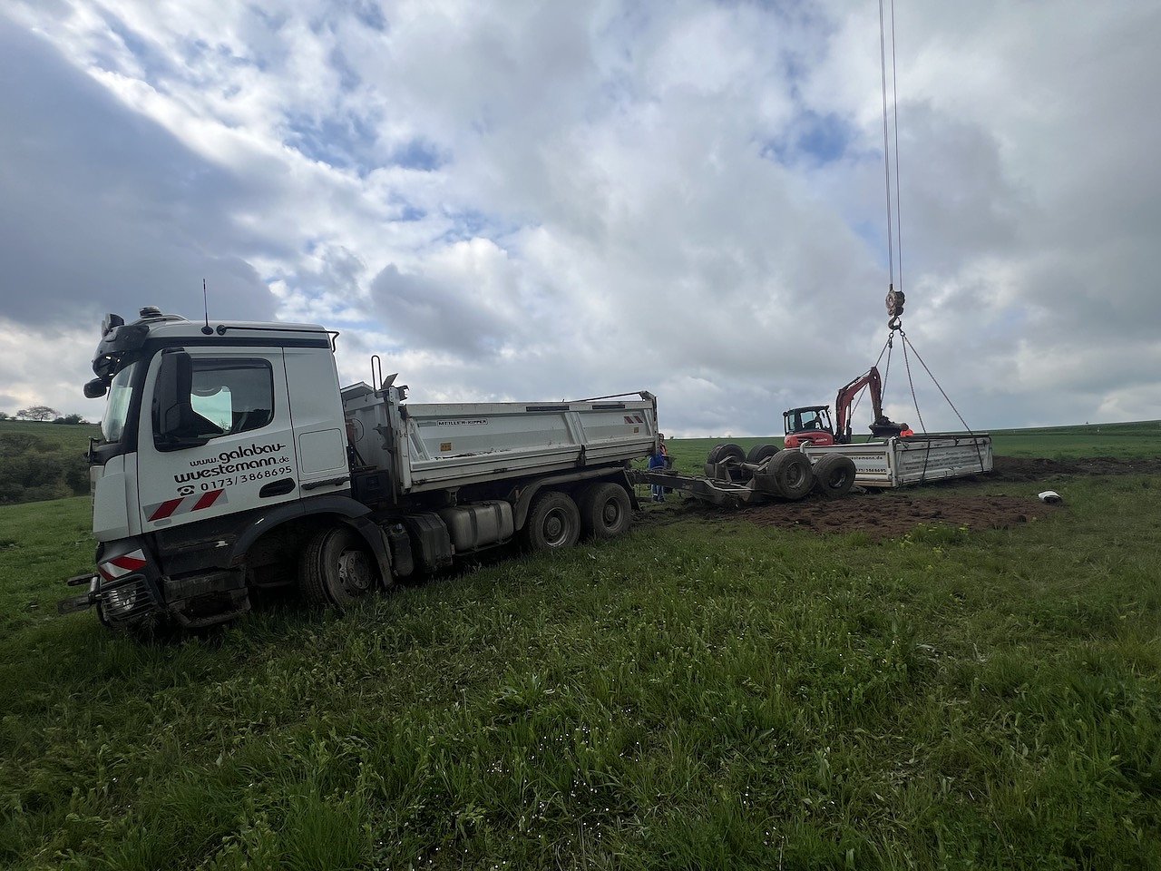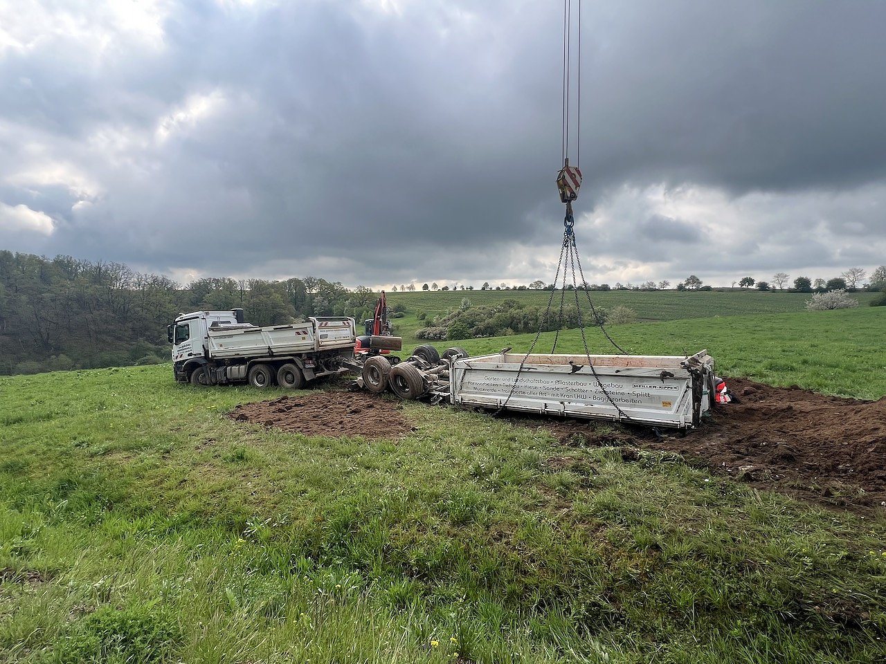 Durch den Hustenanfall in Folge des Verschluckens kam der Fahrer von der Fahrbahn ab und neben dieser zum Stehen. Der Anhänger kippte zur Seite. An dem Zugfahrzeug kam es zu einem Schaden, sodass es nicht mehr fahrbereit war. Zur Stunde dauern die Bergungsarbeiten mit entsprechendem schweren Gerät an.