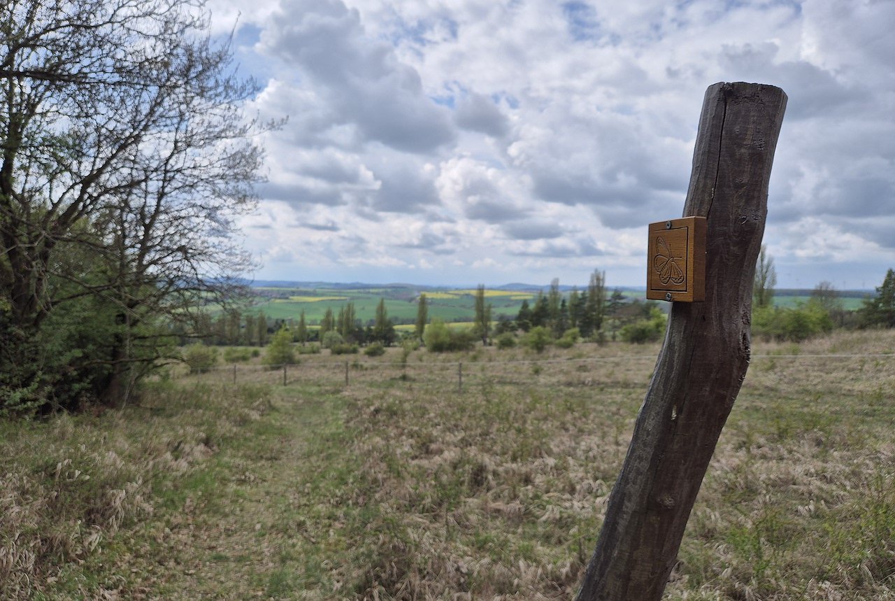 Der seltene Aurinia-Falter, auch Goldener Scheckenfalter genannt, ist der Namensgeber für diesen Weg mit zahlreichen schönen Ausblicken. (Foto: Cornelia Otto-Albers)