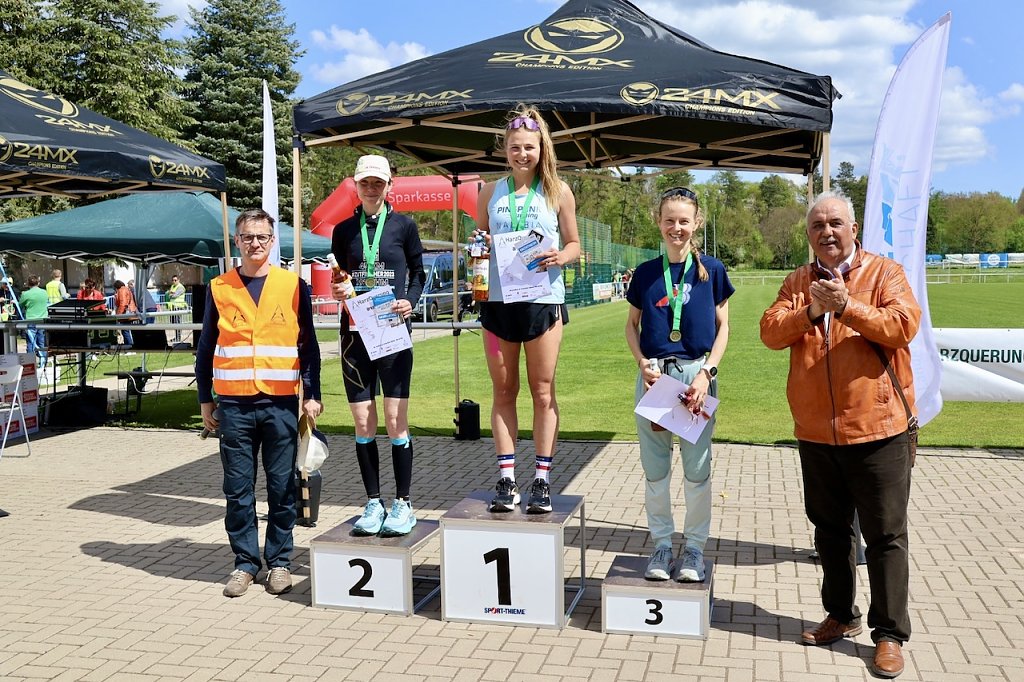 Auf dem weiteren Weg zum ersten Verpflegungspunkt bei Königshütte ein herrlicher Sonnenaufgang bei echt eisiger Kälte an der Zilliertalsperre. An Spielbach und warmer Bode entlang nach Tanne und Trautenstein wurde es nun endlich auch wärmer. Nach 90 km gab es 11 Uhr in Sophienhof Verpflegung. Jetzt blieb nach Abstieg zum Netzkater nur als Endgegner der Poppenberg. Mittlerweile holten uns seit Sophienhof verstärkt die Marathonläufer die 8.30 also 3,5 Stunde nach uns gestartet waren, ein. Absolute Hochachtung für die Läufer die nach dieser Strecke den Poppenberganstieg scheinbar entspannt aufwärts liefen. Bei mir wurden durch falsch gewähltes Schuhwerk (die Traillaufschuhe hatten für das Wegprofil eine zu weiche Sohle und zu wenig Dämpfung) Probleme stärker. Weiter gings nach Neustadt mit Dampflok und neuem Aussichtspunkt bei Rüdigsdorf Richtung Gumpe das Ziel jetzt zum Greifen nah! Nach 24:13 h, 112 km Strecke und 2780 hm glücklich, aber mit schmerzenden Gliedern und Füßen im Ziel Albert-Kuntz-Sportpark. Nach Hause und ab in die Wanne!