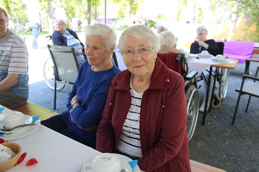 Eine Tafel mit Kaffee und selbst gebackenem Kuchen und ein Grillstand fanden großen Anklang bei den Gästen und den Bewohnerinnen und Bewohnern des Pflegeheims "Sophie von Kühn".