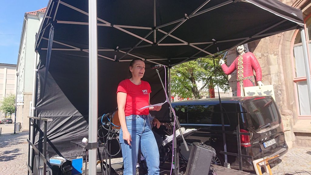 Auf das Ergebnis könne man nicht recht Stolz sein, sagte Juliane Schinkel, die Kreisvorsitzende der Nordhäuser Genossen, es gebe zu viele Punkte, bei denen nach unten getreten werde. Dennoch müsse man sich den Zusammenhalt in den eigenen Reihen erhalten, es müsse kritische Stimmen in der Partei geben, wenn man wieder zu sozialeren Positionen kommen wolle. Für stellt man sich bei der Nordhäuser SPD traditionell auch auf den Kopf: Siegfried Junker, 86 Jahre jung und seit 1953 in der Gewerkschaft, lies es sich nicht nehmen, sein kleines Kunststück auch an diesem 1. Mai vorzuführen.