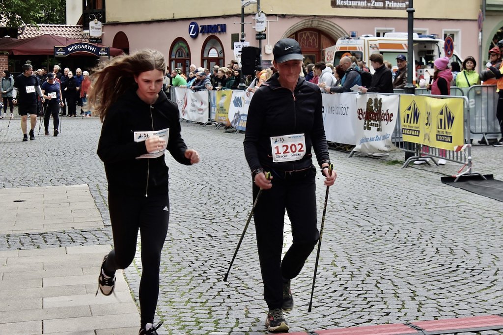 Die herausragendste Leistung zeigte aber wohl die junge Lucie Schmied aus dem Schulteam des Salza-Gymansiums, die im 5-km-Lauf nicht nur die Starterinnen ihres Geschlechts hinter sich ließ, sondern insgesamt den dritten Platz im Lauf belegte. Ihr folgte in der Frauenkonkurrenz Adelheid Angermann vom einheimischen SV Empor und Frieda Bode vom SV Concordia Großengottern. Die war gestern erst in einem anstrengenden Wertungslauf gestartet und hatte keine 24 Stunden Pause dazwischen.