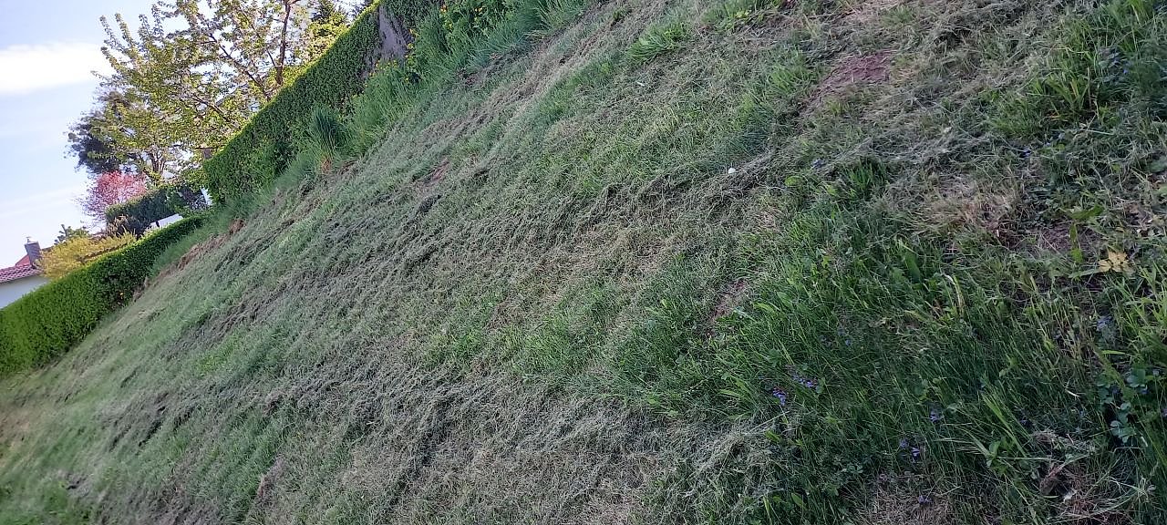 Die Mahd bleibt überall liegen, der Nachwuchs wächst durch und die Flächen sehen dadurch liederlich aus, teilt uns Herr Walther mit. Beschwerden bei der ausführenden Firma hätten bisher keinen Erfolg gezeigt.
