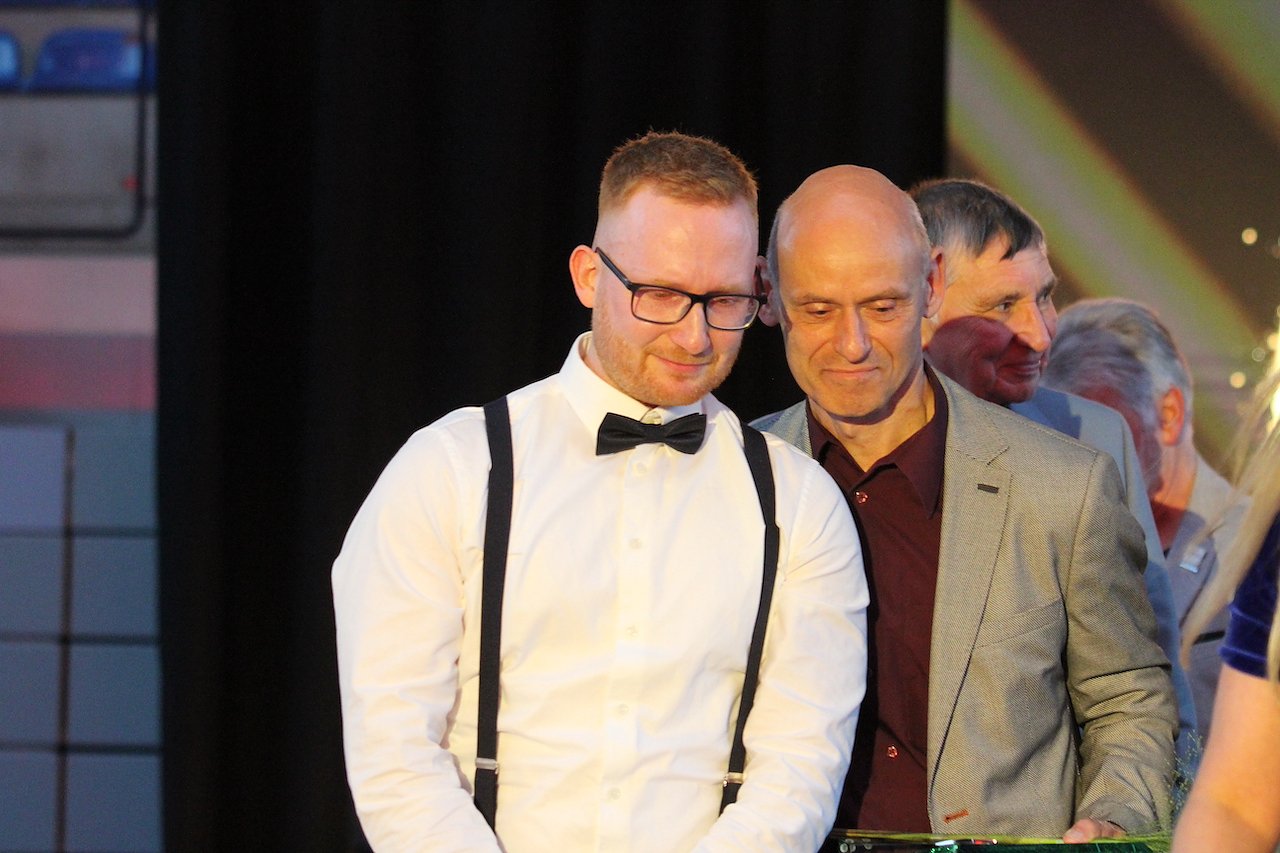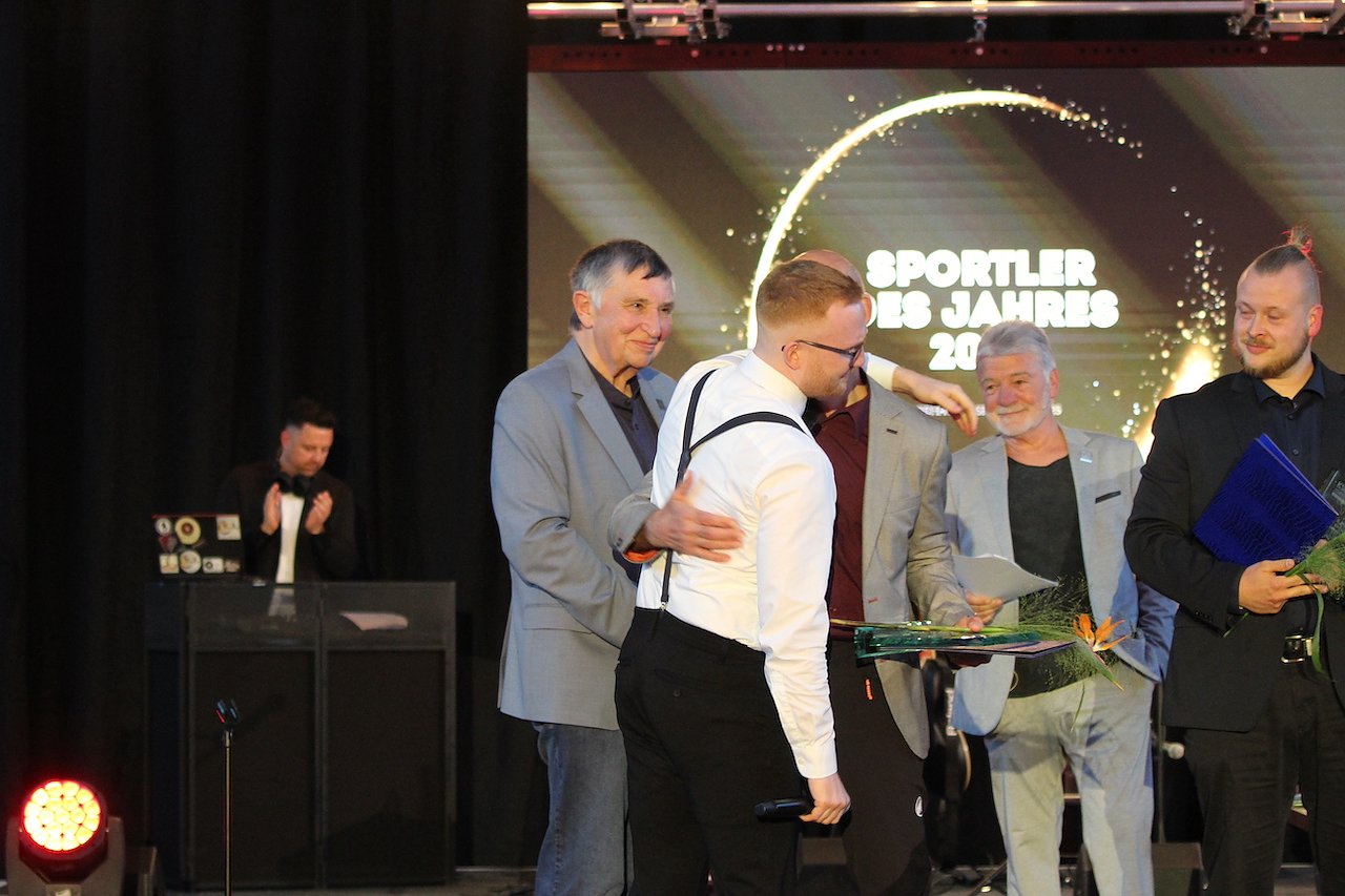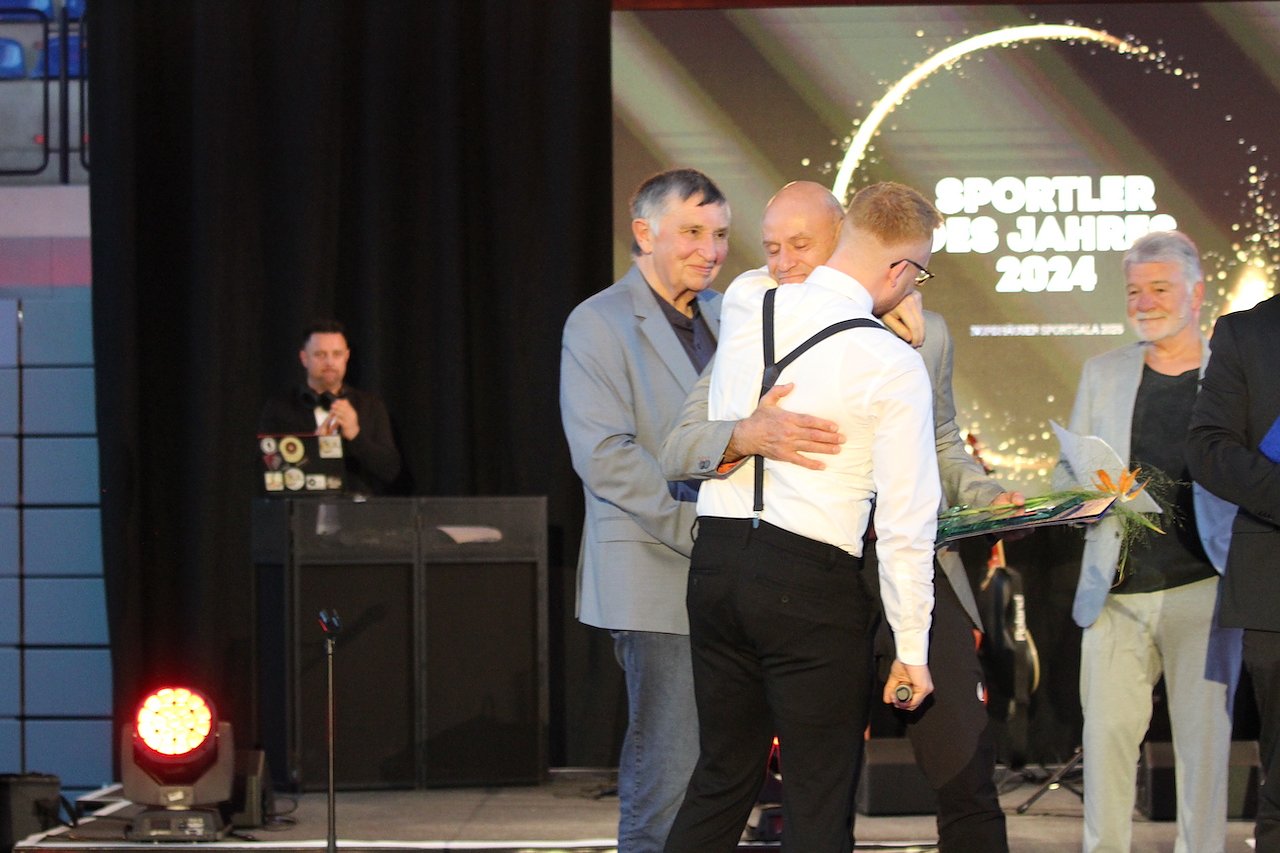 Emotionaler Moment: Viktor Vollmer gratuliert unter Tränen seinem Trainer Frank Pelny zum Titel "Sportler des Jahres" (Foto: oas)