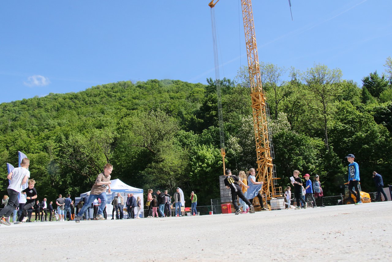 Die große Bodenplatte des neuen Schulgebäudes gab für die Ilfelder Zweitklässler heute schon einen tollen Spielplatz ab (Foto: agl)