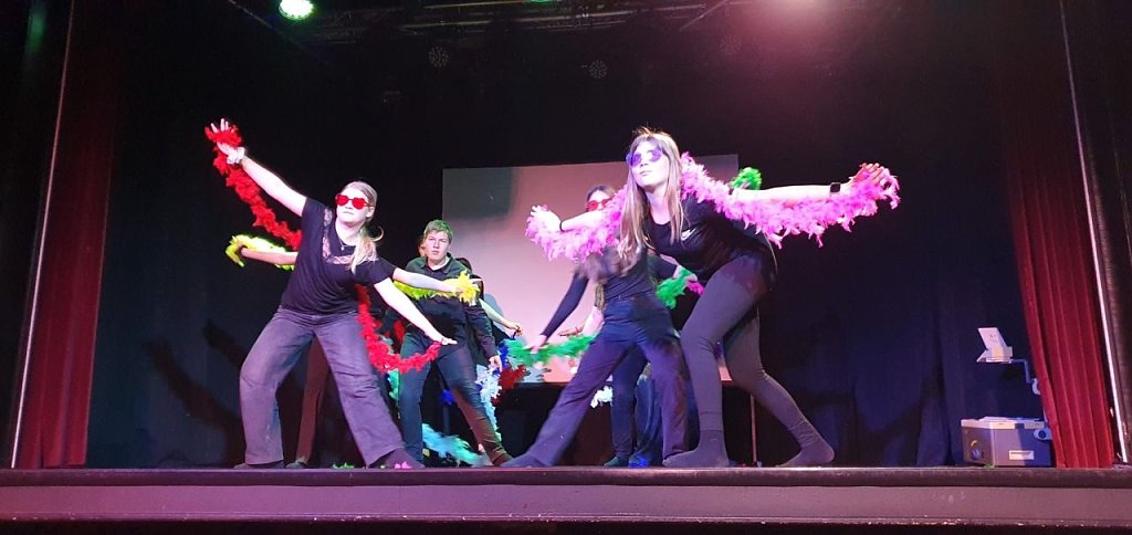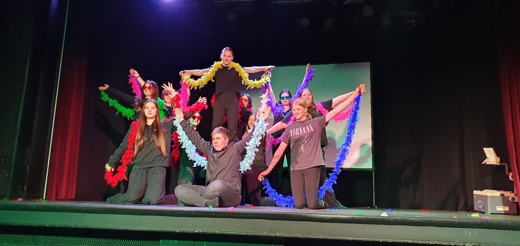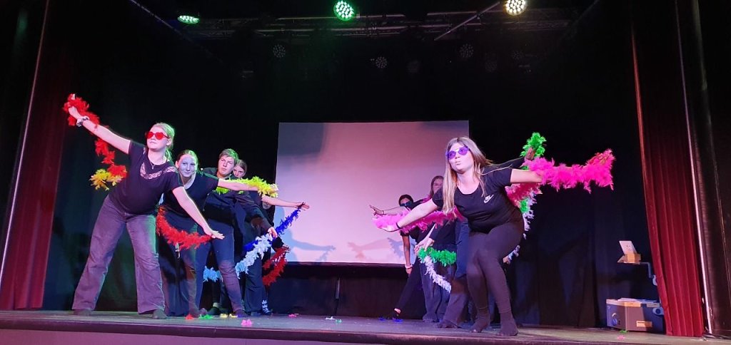 Sicher im Text und voller Spielfreude zeigten die Jugendlichen, was in ihnen steckt. Neben der sprachlichen Umsetzung kamen verschiedene theatralische Mittel zum Einsatz, darunter Lichttheater, Tanz und szenisch-kurzweilige Präsentationen, die das Publikum zum Schmunzeln und Staunen brachten. Besonders das Zusammenspiel von Bewegung, Sprache und Licht sorgte für eine zwar kurze aber lebendigen Theateraufführung, die in Erinnerung bleibt.
