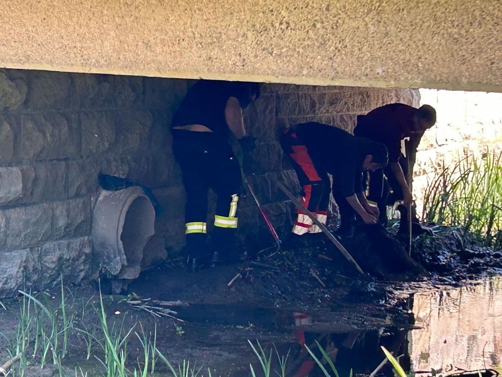Aufmerksame Anwohner bemerkten die Situation und alarmierten die Feuerwehr. Mit mehreren Schaufeln und einem Tragetuch konnte der Hund schließlich behutsam aus dem Schlamm gerettet werden.