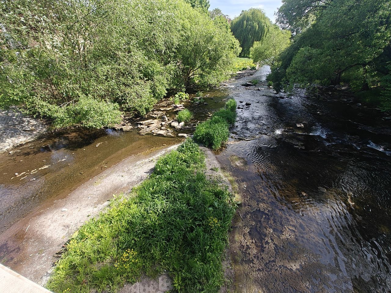 Viel fehlt nicht mehr und man kommt an einigen Stellen ohne nasse Füße über die Zorge. Die Trockenheit des Frühjahrs zeigt der Fluss deutlich, wie Peter Blei festgehalten hat...