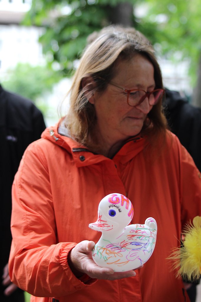 Schon vor dem Rennen, das wieder von Feuerwehr und Fischereiverein professionell begleitet wurde, ging die Kunde über die ENTsetzlichen Vorgänge beim Erfurter Entenrennen vor Wochenfrist durchs weite Rund. Dort wurden die startenden Sportenten einfach aus einem Netz ins Wasser geschmissen und nach dem Rennen - wir scheuen uns fast es mitzuteilen - einfach brutal geschreddert. Ein solches Schicksal bleibt den Startern in der Kurstadt selbstverständlich erspart und ein jeder "Ententrainer" kann seinen ENTErtainer nach der wilden Fahrt durch die reißende Salza wieder mit nach hause nehmen. Auch wenn das eine oder andere Schnabeltier doch arg ramponiert die Ziellinie überquert hat.