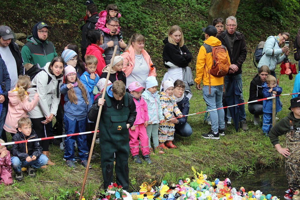 Entenrennen 2025 in Bad Langensalza mit dem Blick auf die Enten des vergangenen Jahres (Foto: Eva Maria Wiegand)