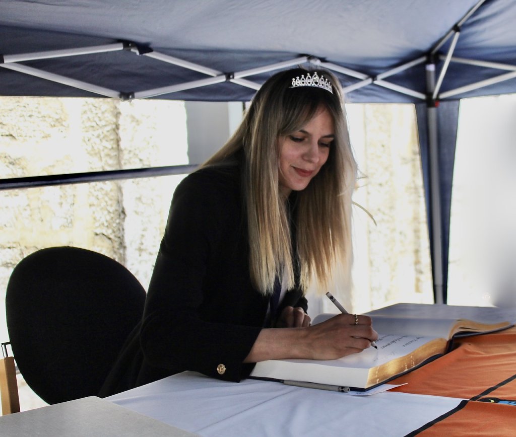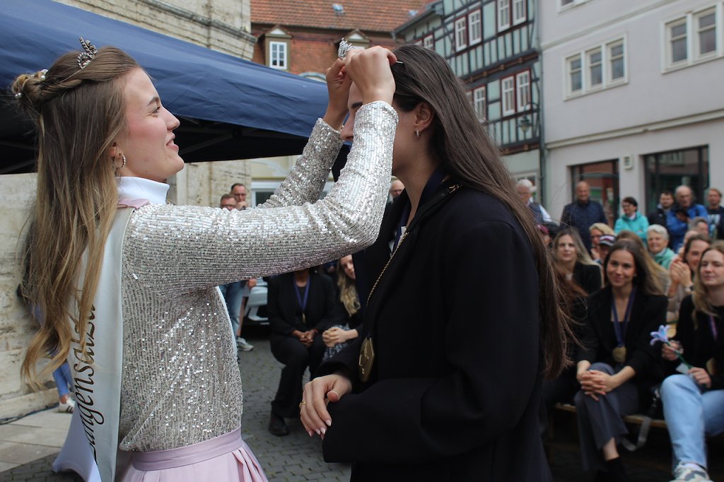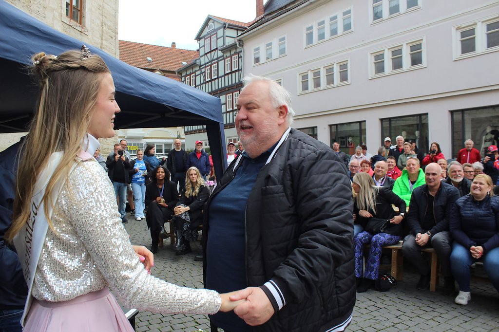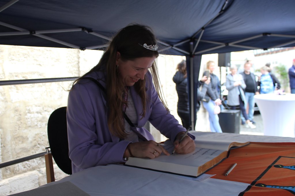 Bad Langensalzas Bürgermeister, Matthias Reinz, sprach voller Stolz und Dankbarkeit für die Verwaltung und die Bürger der Stadt, denen die Ehre zuteil wurde, Herberge eines europäischen Sportchampions zu sein. Um den ehrenden Akt für alle Fans zugänglich zu machen fände die Eintragung bis Goldene Buch im Freien an der Rathausmauer statt und nicht im Ratssaal. Im Namen der gesamten Stadtverwaltung schenkte er den Europacup-Siegerinnen einen Baum, der im Stadtgebiet eingepflanzt nachhaltig an diesen historischen Erfolg erinnern solle. Auch die Rosenkönigin Maxima empfand es als große Ehre dabei sein zu dürfen und den Handballerinnen quasi als Glücksfee auch im nächsten Jahr zu dienen, für das sie maximale Erfolge wünschte.
