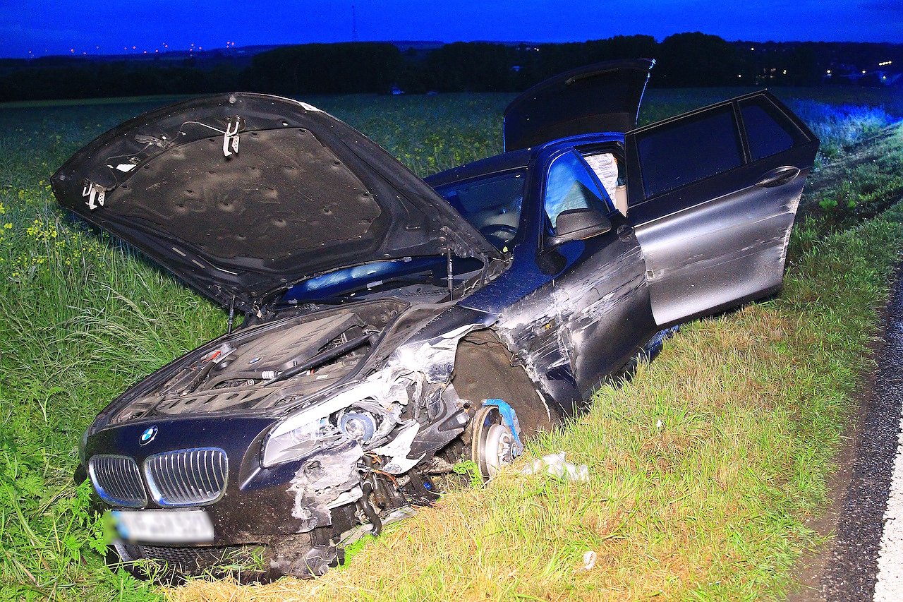 Gegen 20:30 Uhr befuhr ein 51-jähriger BMW-Fahrer aus Ebeleben die Bundesstraße in Richtung Gundersleben. Ausgangs einer Rechtskurve kam der Fahrer aus ungeklärter Ursache nach links von der Fahrbahn ab, prallte gegen die Leitplanke und in der weiteren Folge blieb er nach ca. 150 m rechts im Straßengraben liegen. Die beiden Fahrzeuginsassen blieben unverletzt. Der Sachschaden wird mit rund 35.000 Euro beziffert.