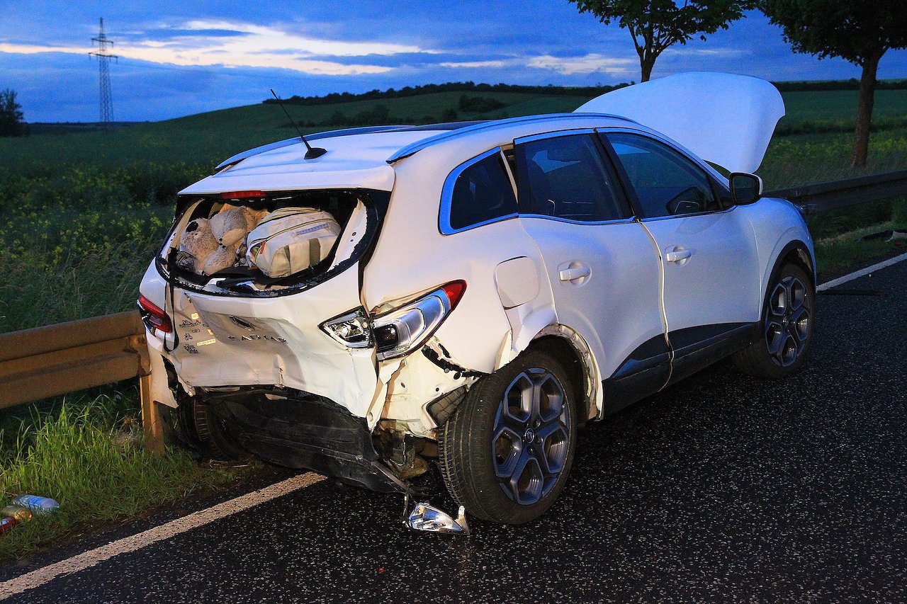 Ein 43 Jahre alter Renault Fahrer befuhr die B249 aus Gundersleben kommend in Fahrtrichtung Ebeleben. Aufgrund des ersten Unfalls hielt er und bot seine Hilfe an. Da keine weitere Hilfe nötig war, wollte der Fahrer weiterfahren, als ein 43-jähriger VW-Fahrer aufgrund von Unaufmerksamkeit auf den anfahrenden Renault auffuhr. Der Renault wurde um 180 Grad gedreht und landete an der Leitplanke. Die 39-jährige Insassin des Renault wurde bei dem Aufprall leicht verletzt. An diesen beiden Fahrzeuge beläuft sich der Gesamtschaden auf rund 46.000 Euro