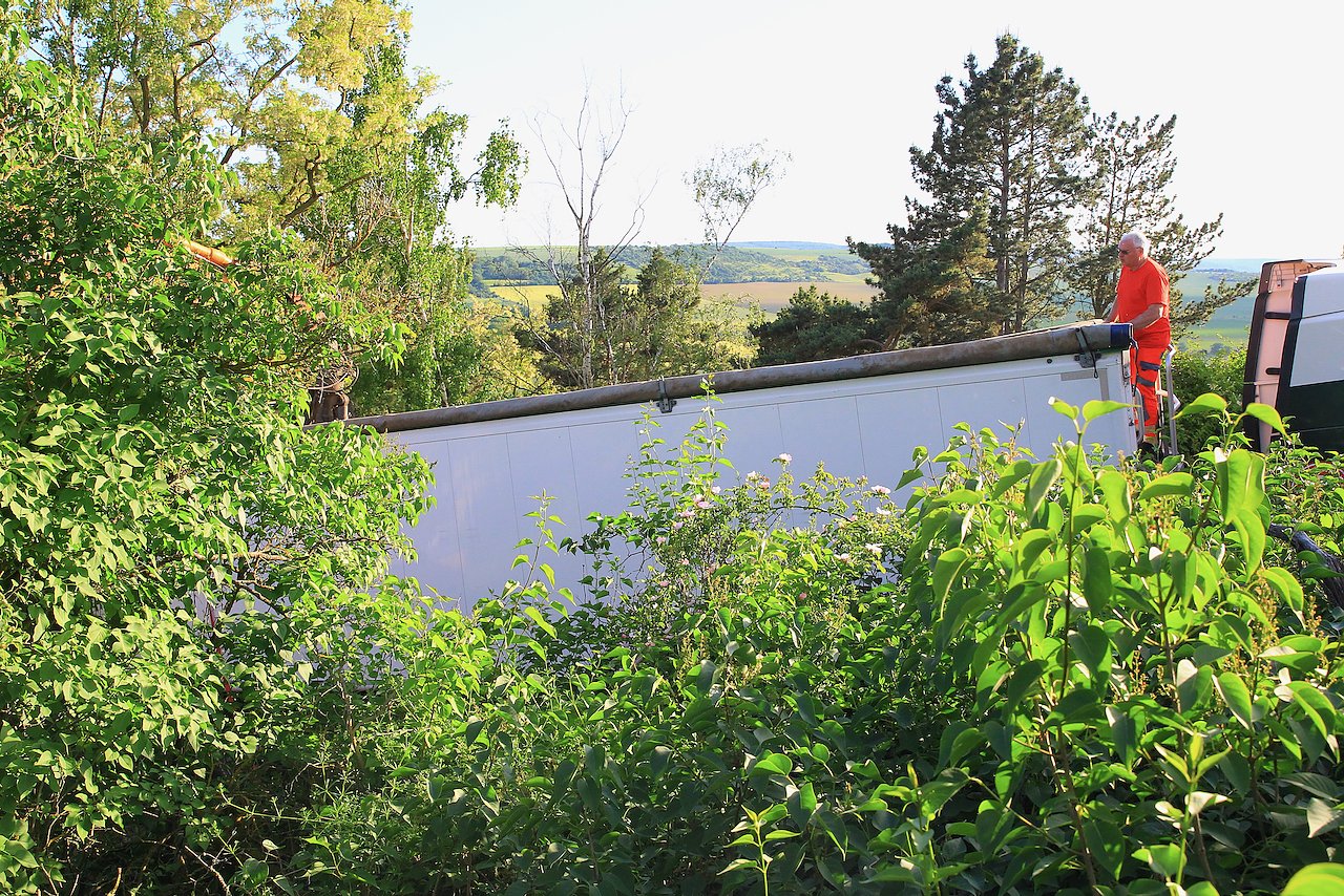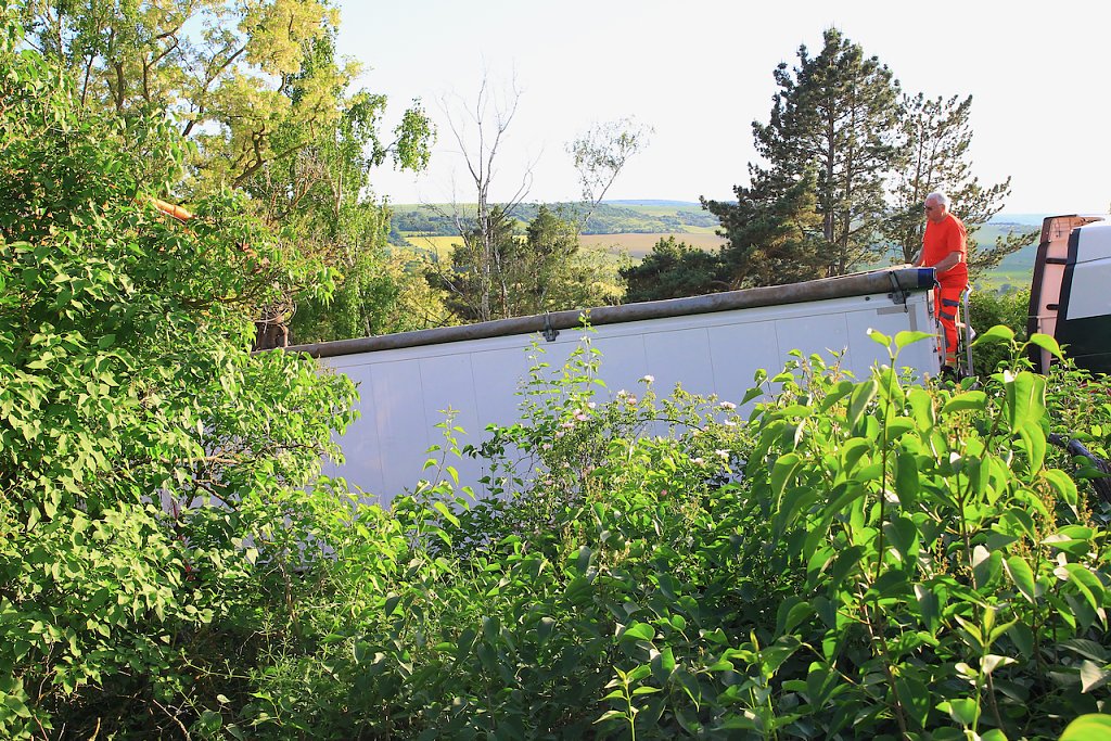 Gegen 15:30 Uhr befuhr der LKW-Fahrer in Bad Frankenhausen die Straße Am Hoheneck. Hier hätte dem Fahrer schon auffallen müssen, dass er auf dem "falschen Kurs" ist. Aber das hinderte den Landstraßen-Kapitän nicht daran, die schmale Straße weiterzufahren. Im weiteren Verlauf seiner Irrfahrt fuhr er in ein Naturschutzgebiet, der Weg hier wurde immer schlechter und enger, aber auch hier manövrierte sich der Fahrer durch.