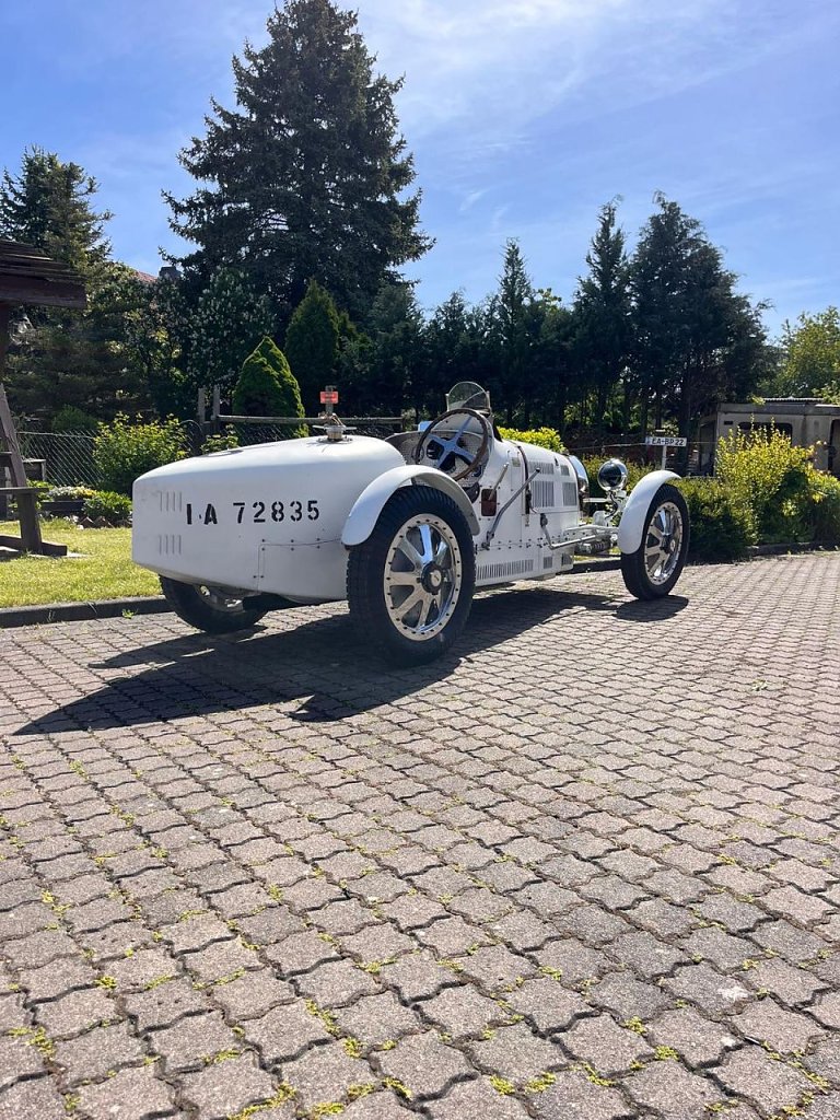 Besucher der kommenden Veranstaltung können an diesem Tag auch mehrere spektakuläre Rennfahrzeuge sehen so aus dem Hause Bugatti u.a. einen Vorkriegs T35, ausgestattet mit einem 8 Zylinder Kompressor Motor. Der Schöpfer dieser Rennfahrzeuge, der gebürtige Italiener aus gut betuchten Hause, Ettore Arico Isidero Bugatti (*1881 - +1947), wurde der berühmteste französische Hersteller von Renn – Sport – und Luxuswagen in der ersten Hälfte des 20. Jahrhunderts. Auch an Schienenfahrzeugen, an Sportbooten und an Flugzeugen versuchte sich dieses Multitalent. Glaubt man den Überlieferungen, so war Bugatti ein Exzentriker und wohl auch ein etwas schwieriger Zeitgenosse, dessen Wirken aber viel Beachtung fand. Seine Entwicklungen erzielen heute hohe Preise auf Versteigerungen. Aber auch einen um 10 Jahre älteren Fiat 501, Bj. 1924 welcher einst auf der AVUS in Berlin seine Runden drehte, wird ein Anziehungspunkt für Besucher der Veranstaltung sein. Auch dieses seltene Rennfahrzeug soll an der Ausfahrt ab 14.00 Uhr teilnehmen.