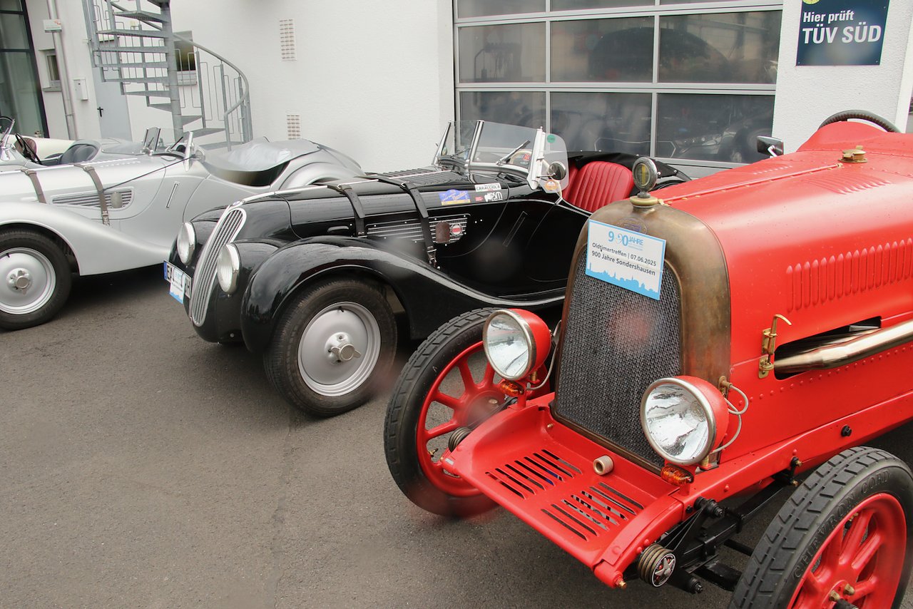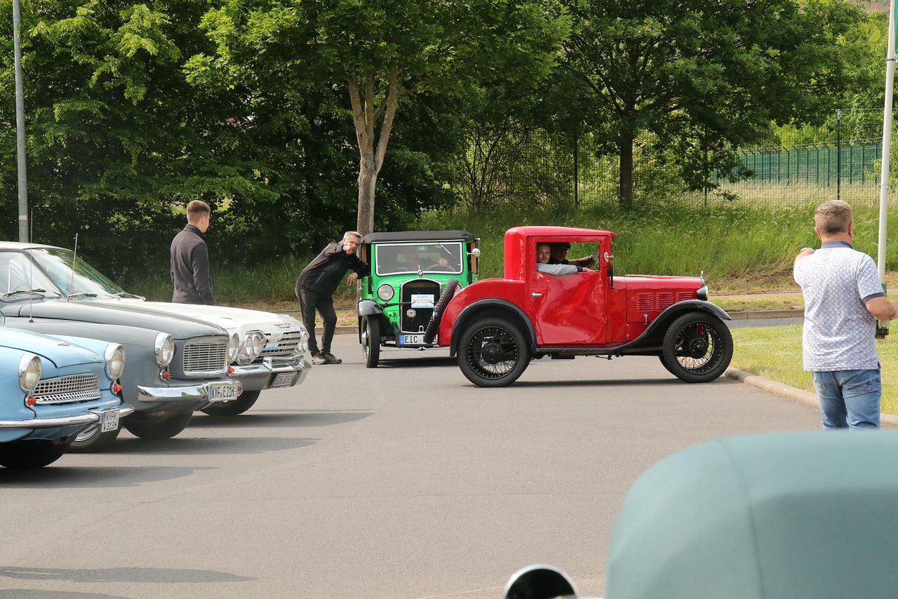Nach etwas über einer Stunde Ausfahrt trudelten die historischen Fahrzeuge nach und nach am Zielpunkt ein, dem Autohaus Liebe in Sondershausen.