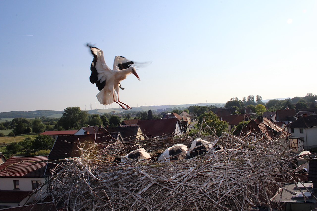 Drei Jungstörche, die kürzlich in Windehausen das Licht der Welt erblickten sind am Mittwochabend ordnungsgemäß beringt worden. Hier sind die fotografischen Beweise...