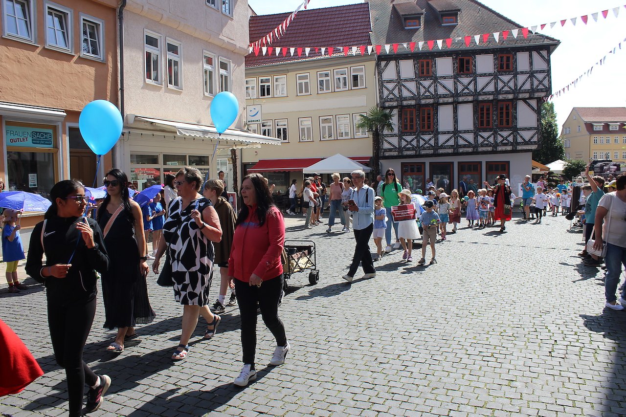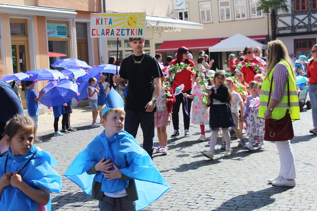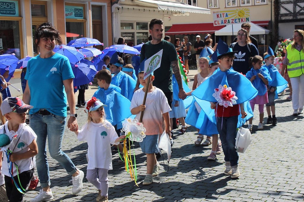 Ausgerüstet mit Rucksäcken und Getränken durch die Leitung der Celenus-Kurklinik zogen gut 300 Kindergartenkinder durch die Stadt. Mit von der Partie waren die Einrichtungen "Spatzennest", Kita Brikenwiese, Kita "Clara Zetkin", die "Unstrutspatzen", die "Salza Knirpse" und die Kita "Rosa Luxemburg". Weiterhin waren Grundschüler der Hufeland Grundschule, der Thepra- und der Sonnhofschule auf der Strecke.