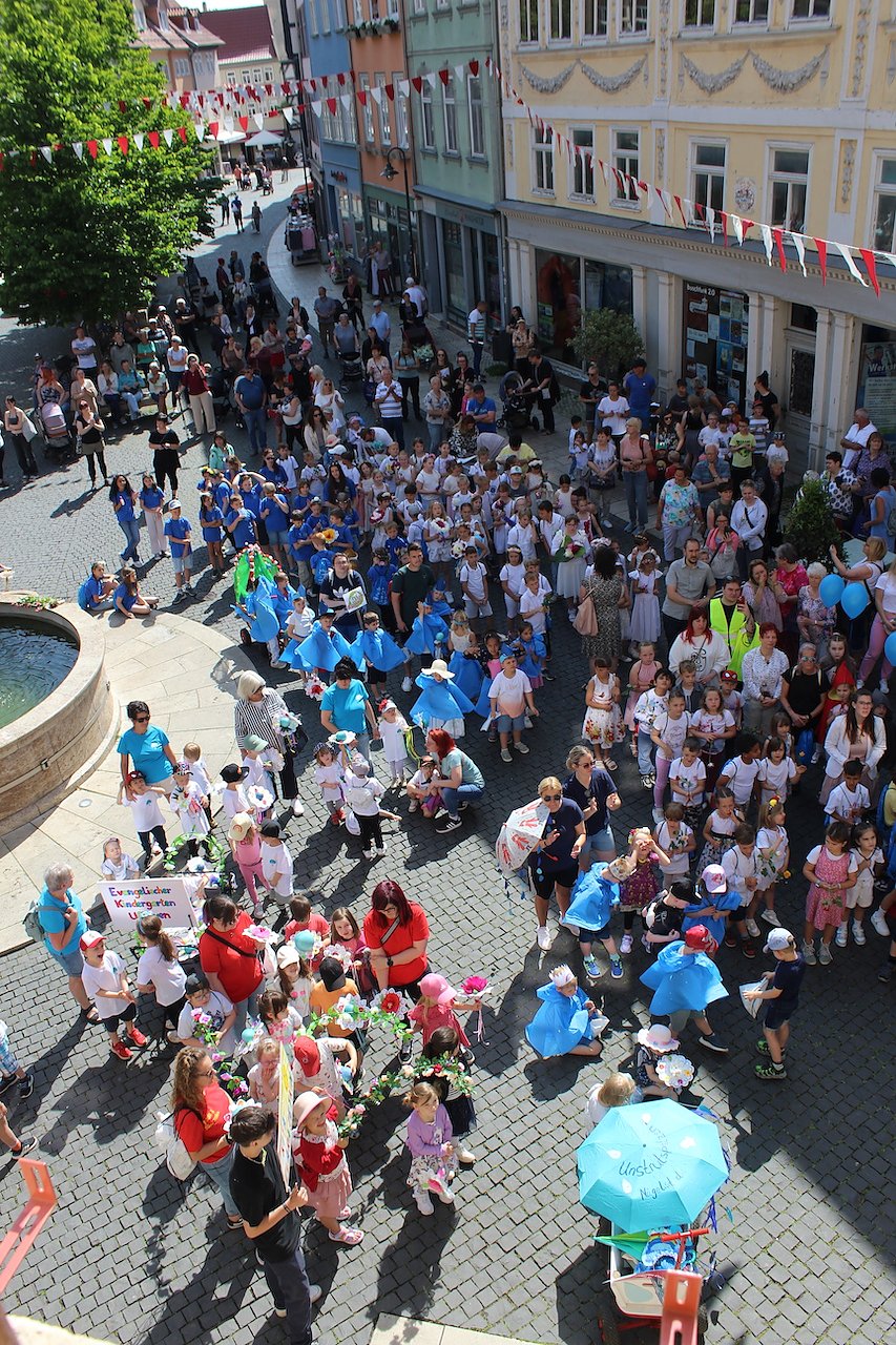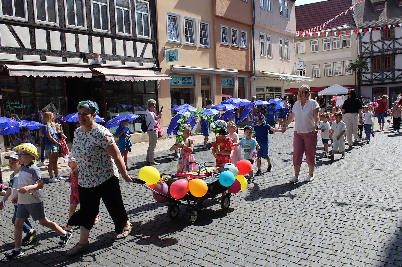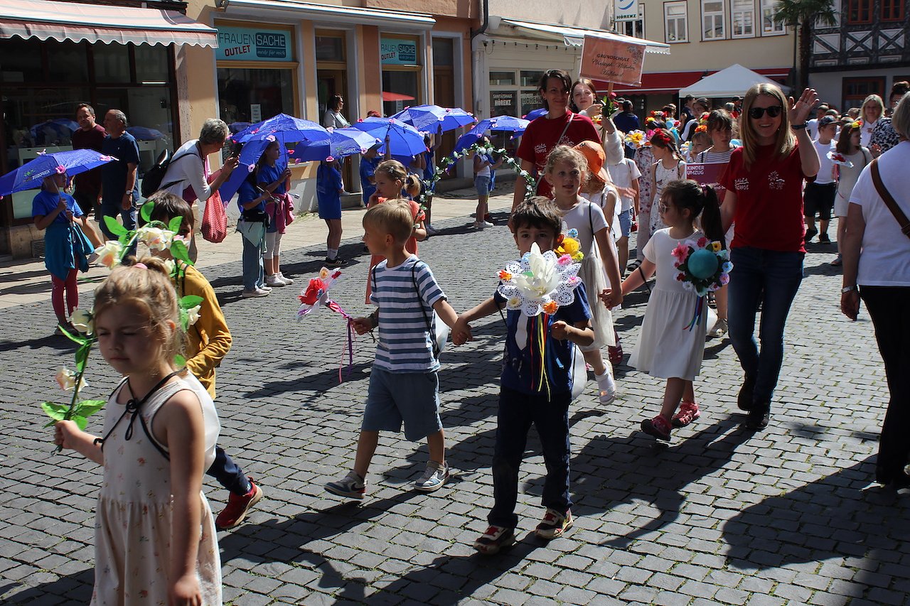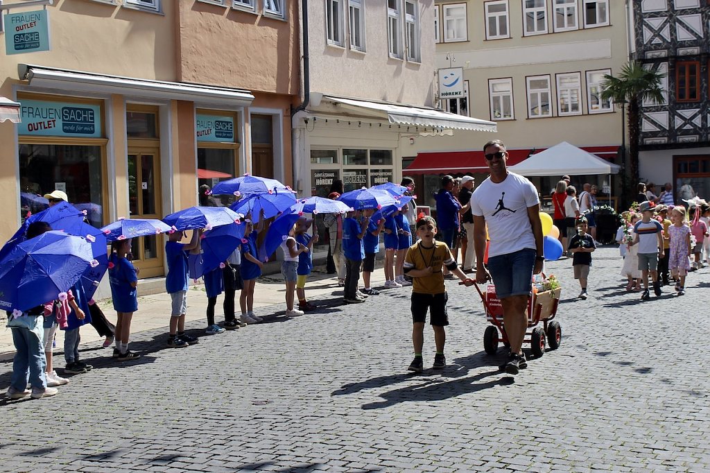 Angeführt von der Rosenkönigin, dem Bürgermeister und der Friederike liefen alle froh gelaunt bei schönstem Festwetter durch die Stadt. Ein wirklich schöner und harmonischer Auftakt des 213. Brunnenfests der Stadt Bad Langensalza.