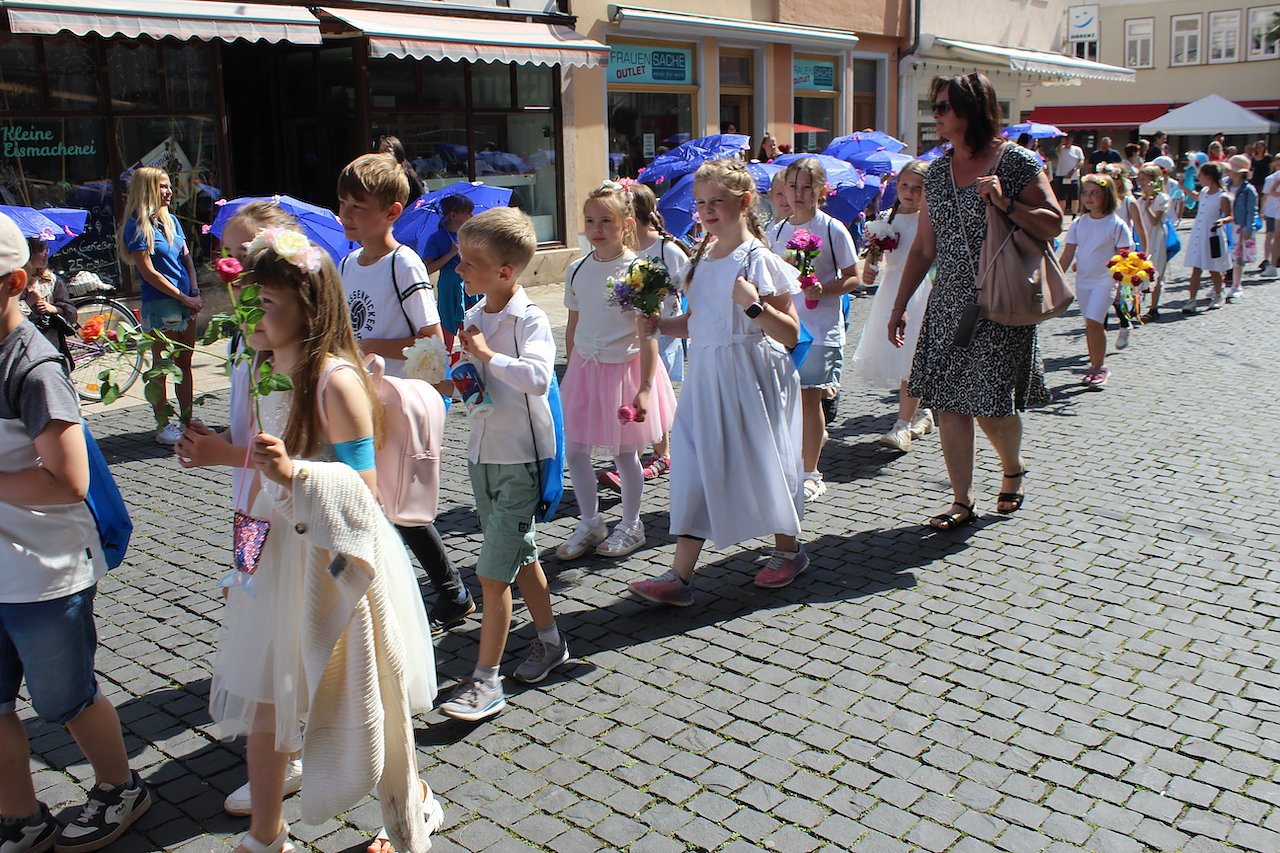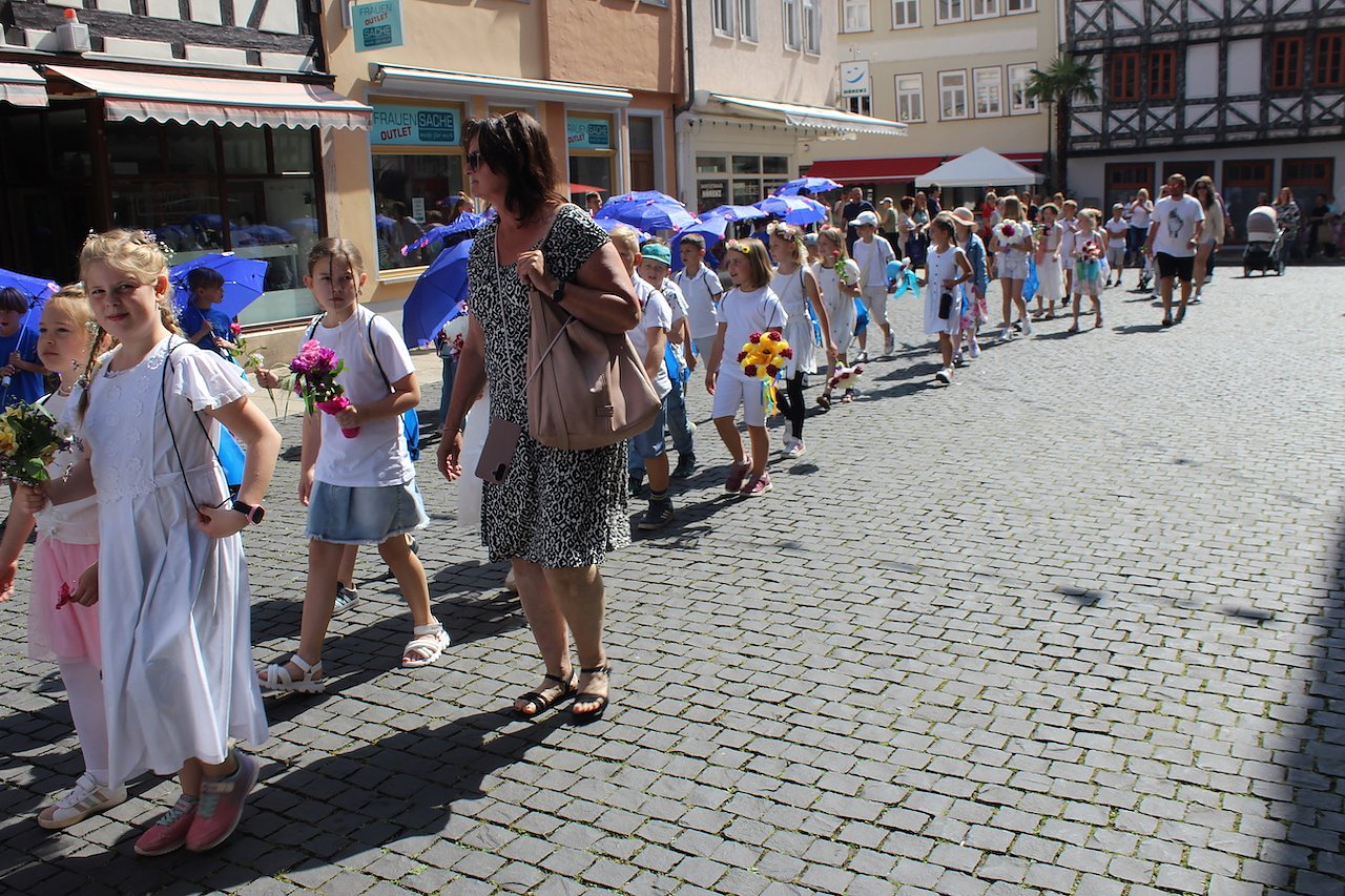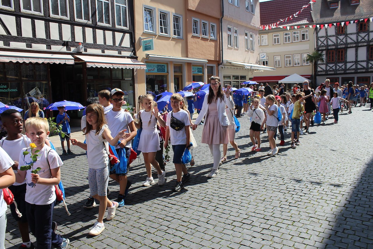 Angeführt von der Rosenkönigin, dem Bürgermeister und der Friederike liefen alle froh gelaunt bei schönstem Festwetter durch die Stadt. Ein wirklich schöner und harmonischer Auftakt des 213. Brunnenfests der Stadt Bad Langensalza.