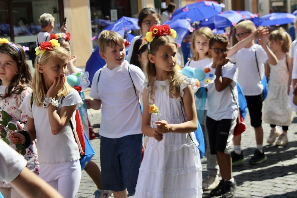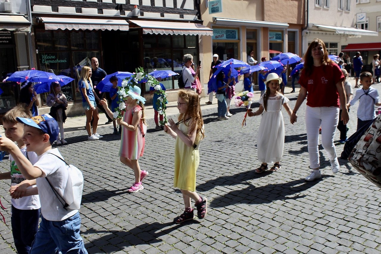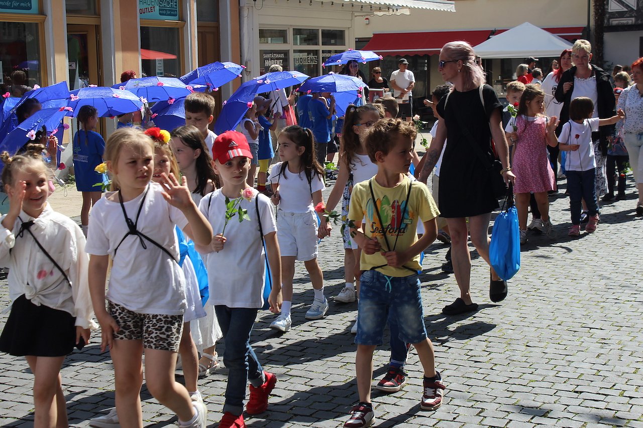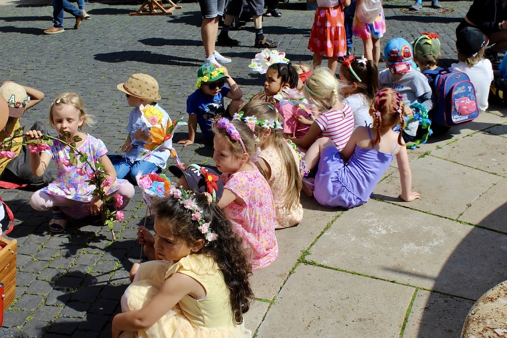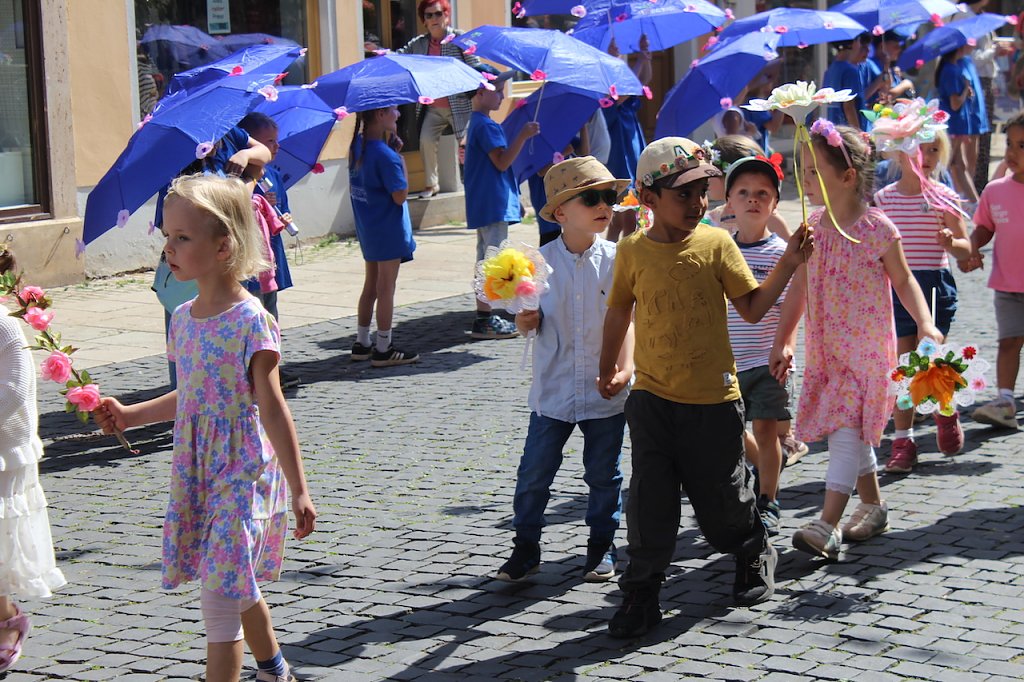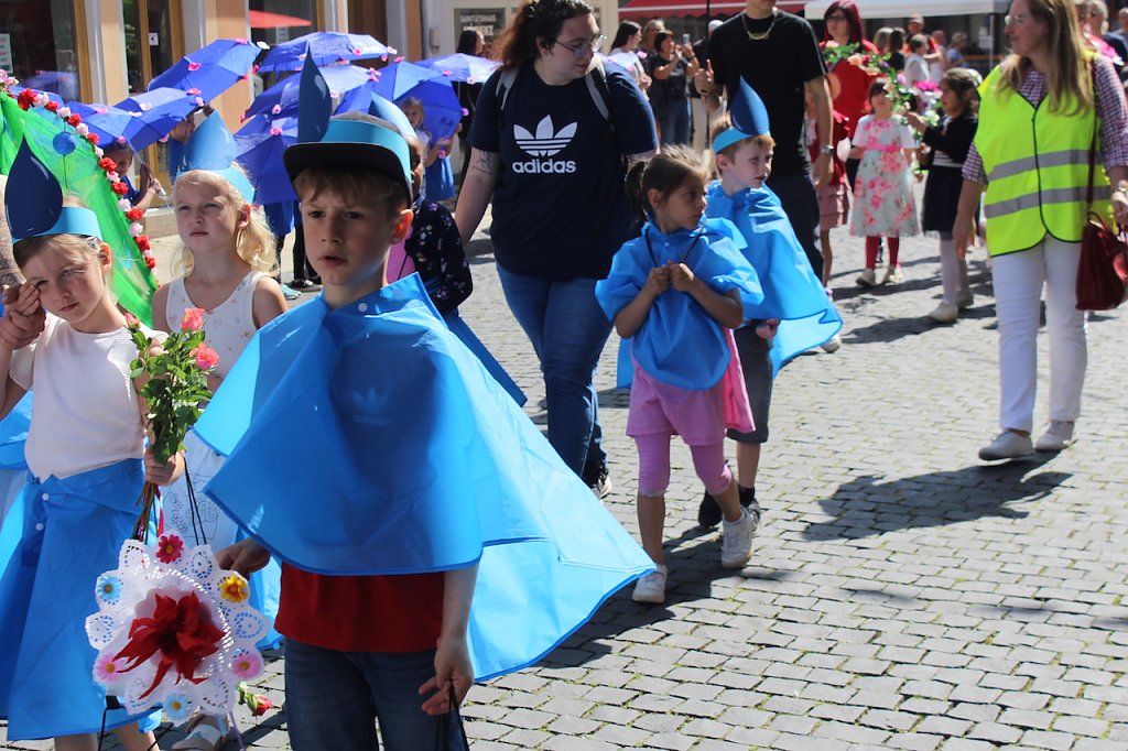Traditionell waren heute Vormittag die Kindergärten der Rosenstadt mit ihren kleinen Brunnenfest-Fans unterwegs vom Schlösschenpark zum Rathaus. Und wie immer säumten zahlreiche Menschen die Straßen, um den Kindern zuzujubeln...
