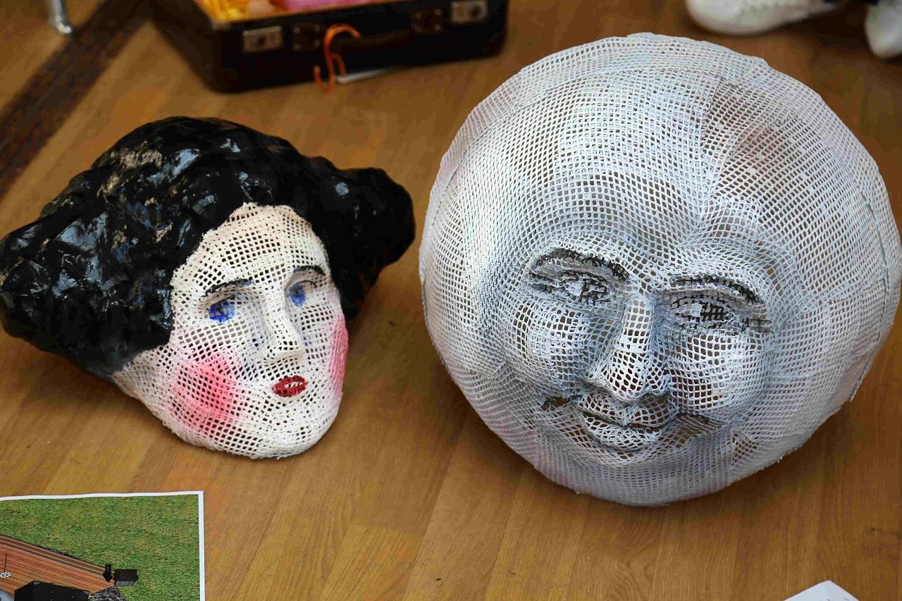 Wir haben außer unserem Koffer noch eine Litfaßsäule mit allerlei Plakaten, zum Beispiel »Most wanted« – »Der Mond ist mit Bastienne abgehauen, wer hat sie gesehen?«, Blondi hat eine Partnerannonce aufgegeben und wir haben überdimensional große Blumen, eine ist sogar bespielbar. Eine schöne Hollywoodschaukel wird es geben – sehr romantisch! Aus einem Kinderwagen ist ein Drehorgelwagen entstanden, der mitspielt. Es wird bestimmt ganz zauberhaft.