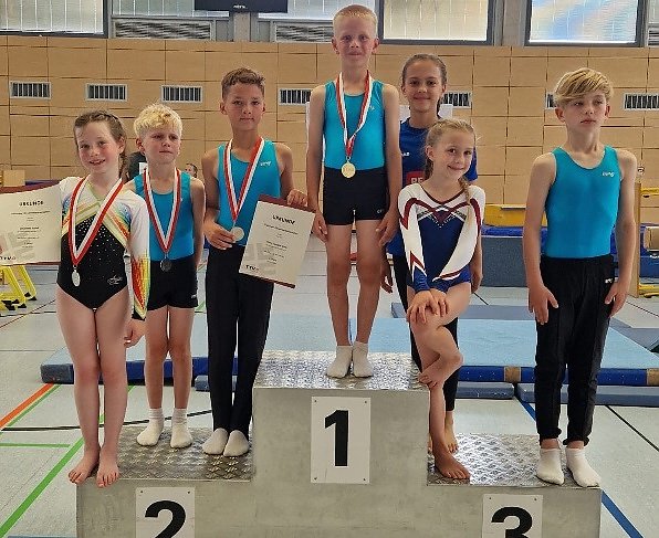 Bei den Turnern gaben Theo Samatar Wais und Max Kulemann in der Altersklasse 10/11 ihr Debüt. In einen starken Starterfeld mit 27 Teilnehmern, erturnte sich Theo Wais den Vizeeinzelmeistertitel. Sein Trainingskamerad Max Kulemann wuchs über sich hinaus und erturnte sich Platz 8.