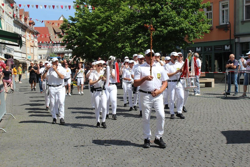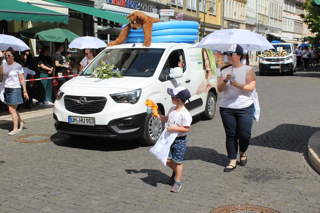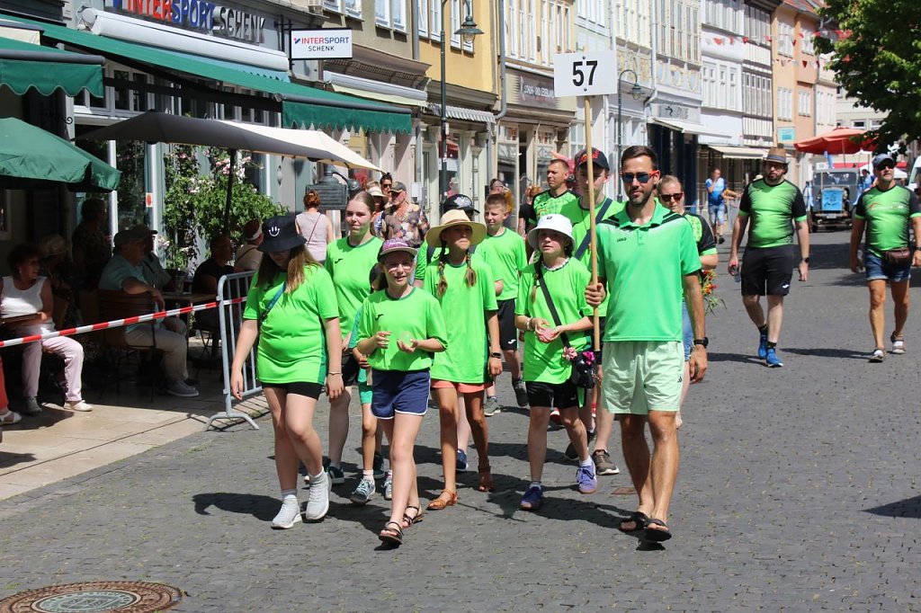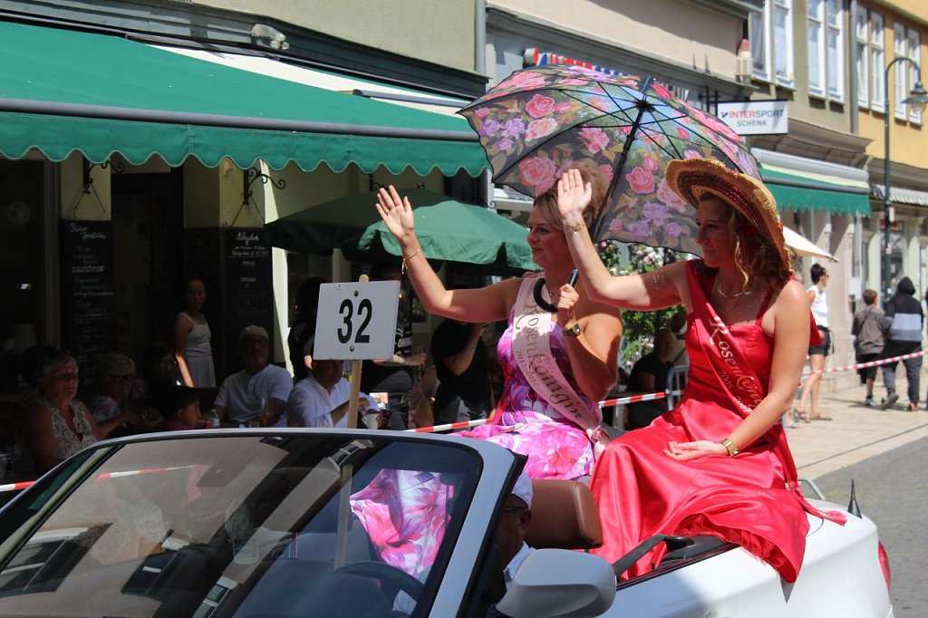 Trotz der tropischen Temperaturen waren viele Schaulustige an der Strecke und jubelten den tapferen Mitstreitern des Festumzuges zu. Von Kindergärten und Grundschulen über Spielmannszüge, Trommelgruppen und ehemaligen Rosenköniginnen bis hin zu Vereinen verschiedenster Couleur sowie den städtischen Betrieben und Institutionen bewegten sich die mehr als 60 Bilder am Nachmittag durch die Stadt.